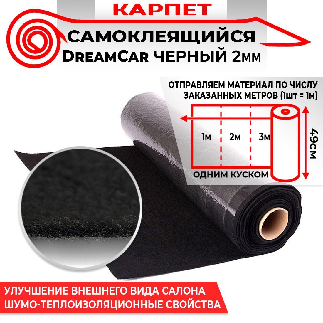 Акустическая ткань Dream Car Карпет самоклеящийся чёрный 0,49 Ширина – 0,49м Толщина – 2,0мм Вид – Декоративный материалХарактеристики Облицовочный самоклеящийся продукт, с выраженными декоративными свойствами. Представляет собой синтетические волокна