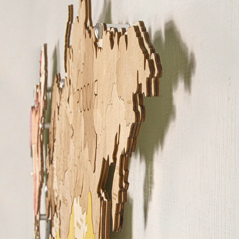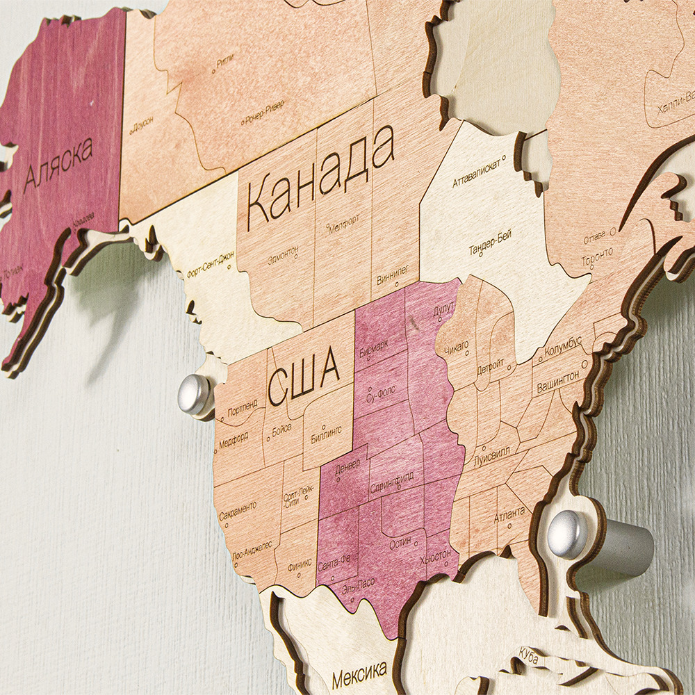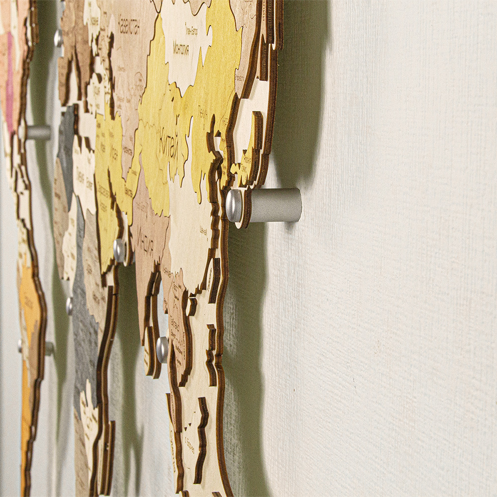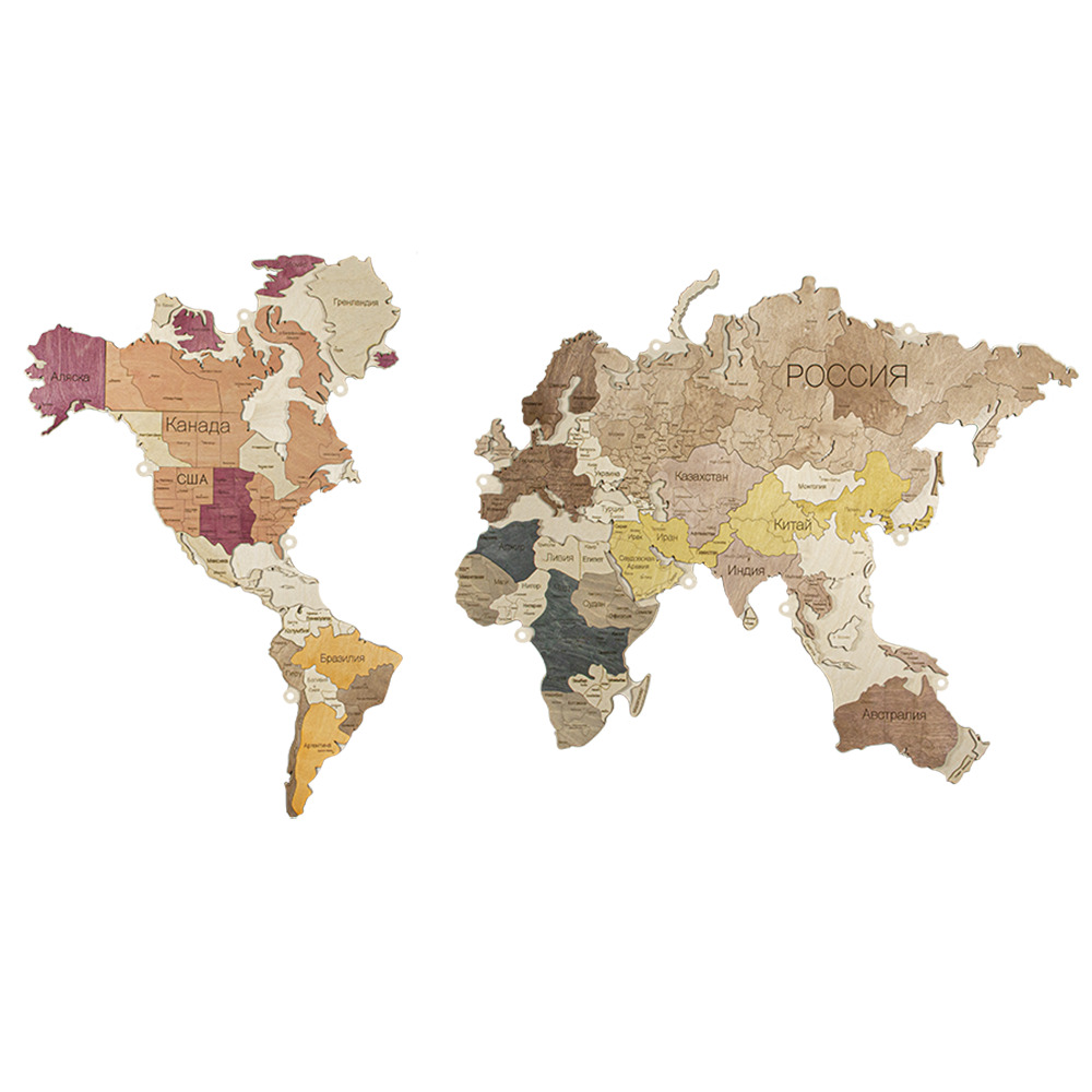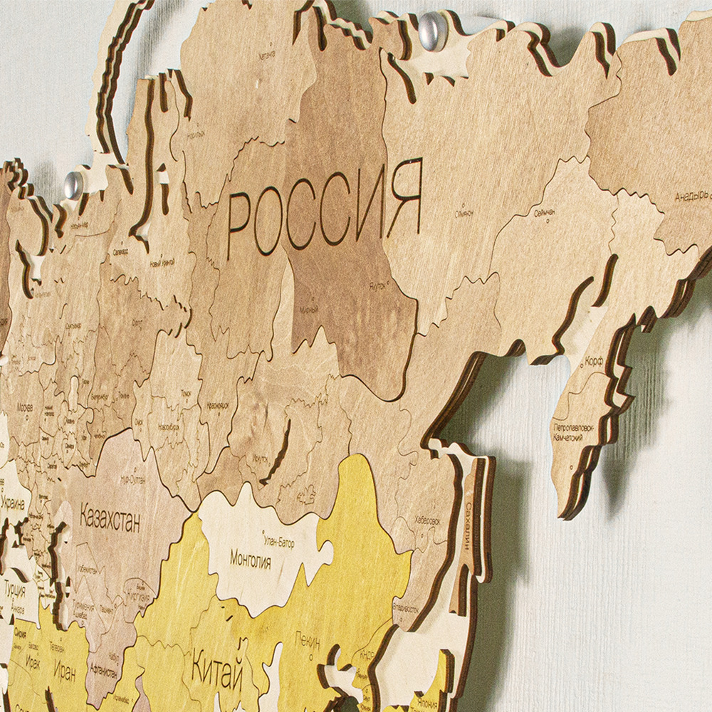 Интерьерная карта мира из дерева 160*85 cvКарта мира собственного производства из березовой фанеры 4 мм, сорт экстра, выполнена из экологически чистых материалов и имеет размер в собранном виде 160х85 см.Она имеет максимальную детализацию городов и стран,