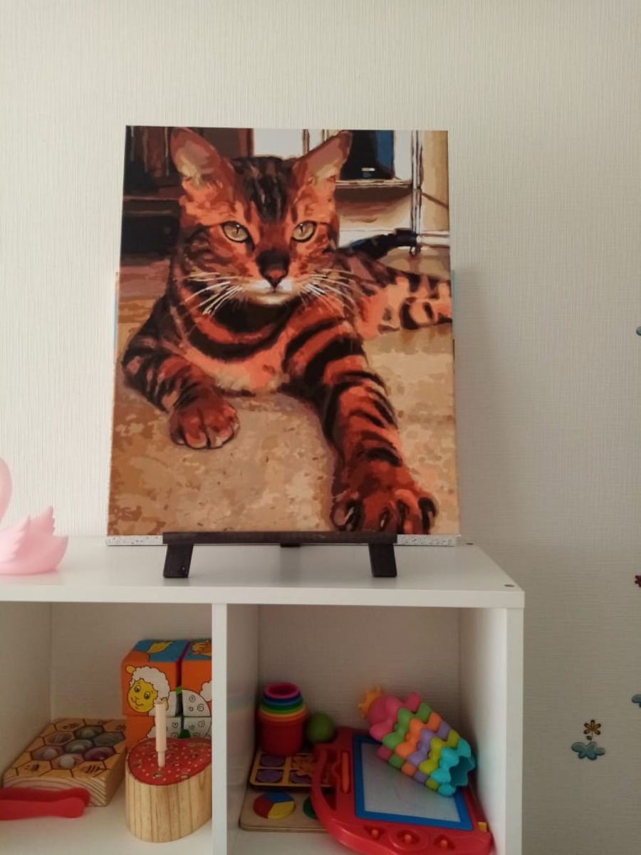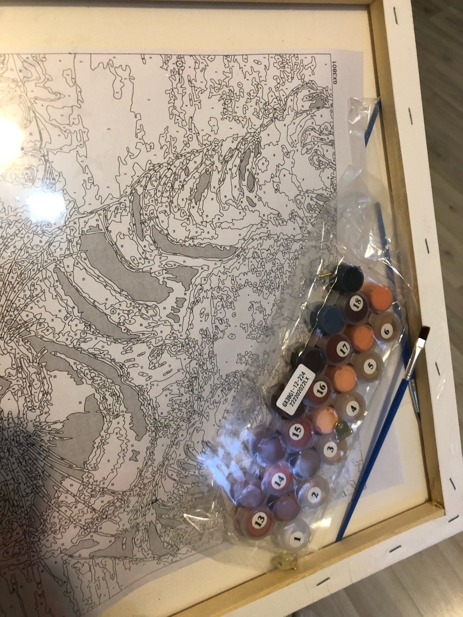 Комплектация:В набор входят:холст на подрамнике с нанесенной пронумерованной схемой будущей картины;;кисти разной толщины, 3шт.;акриловые пронумерованные краски;крепления для подвешивания готовой картины на стену;контрольный лист - схема-копия картины дл