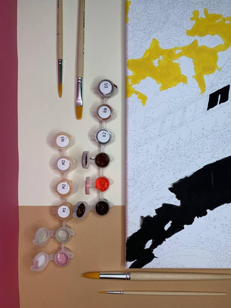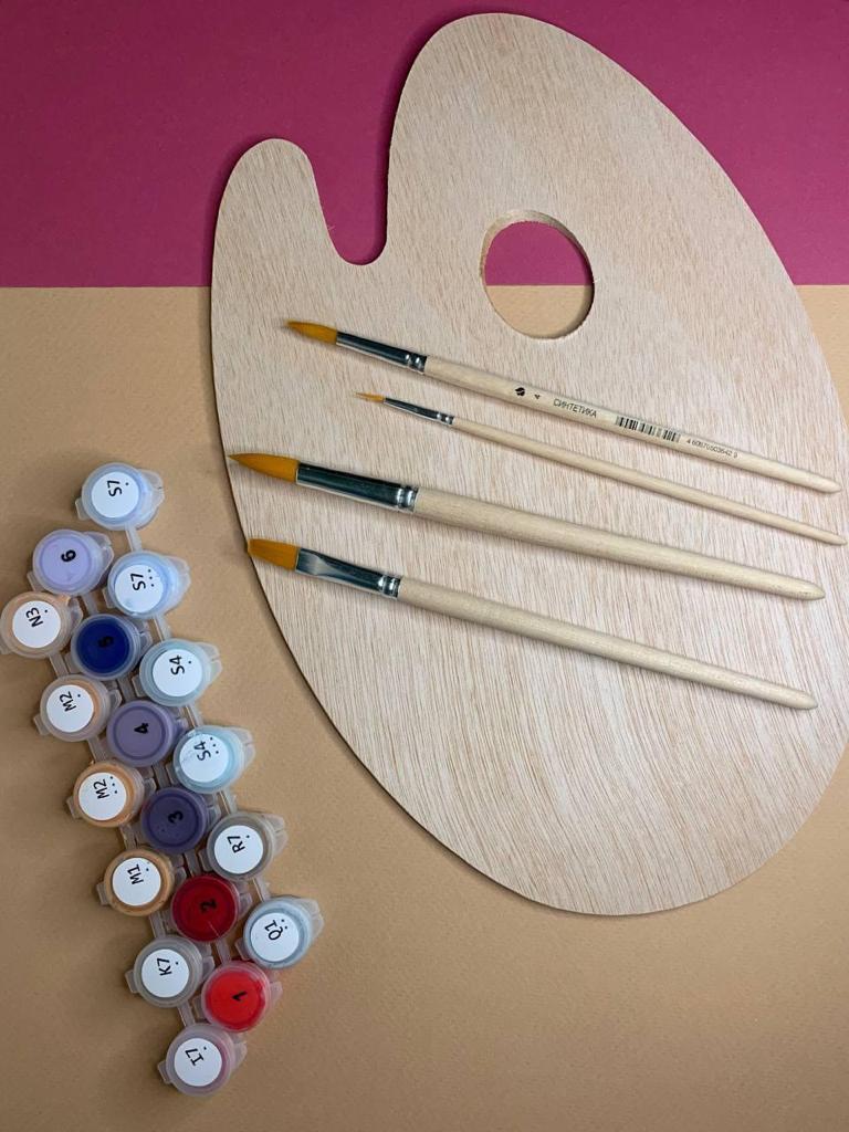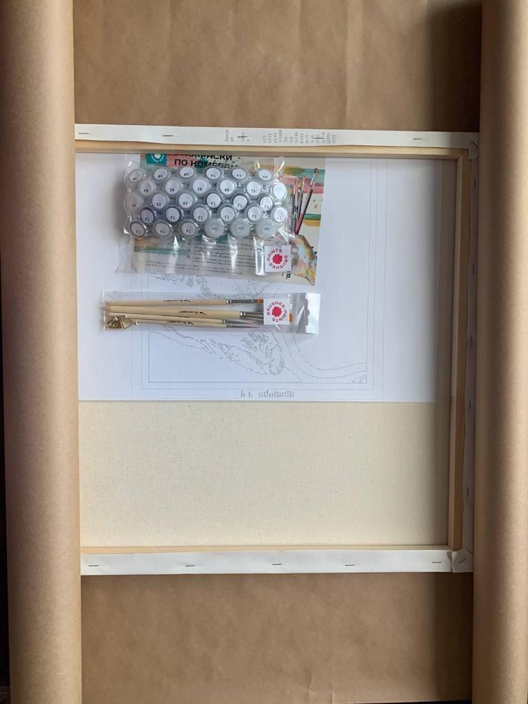 В состав набора входит: Холст натянутый на подрамник, набор из красок, набор из кистей. Контрольная лист А3, цветной пример, инструкция. Картины размером 30х40, 40х50, 40х60 отправляются в фирменных коробках с ручкой. Остальные размеры отправляются в краф
