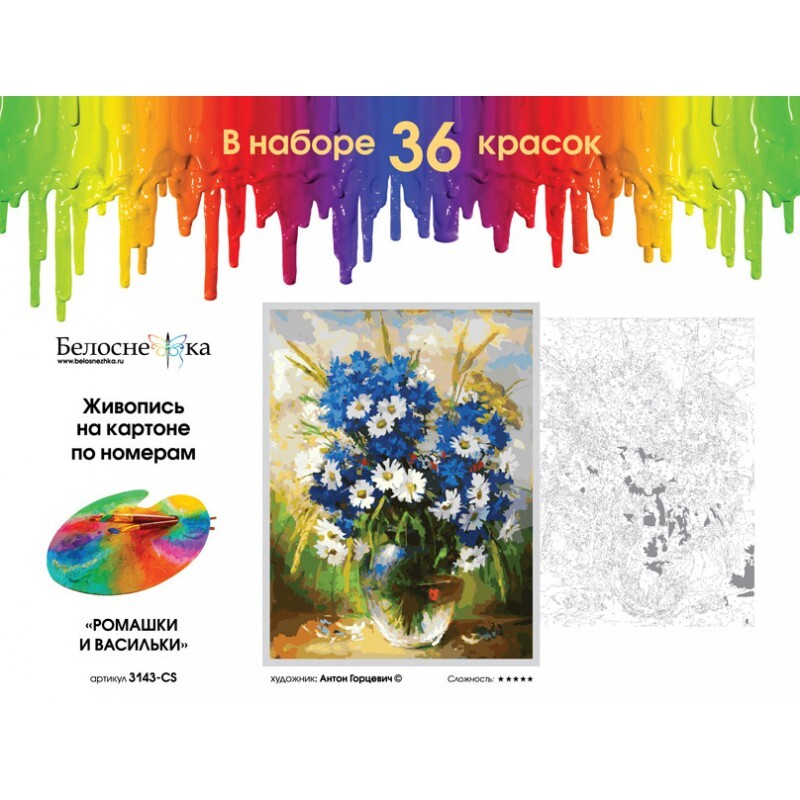 Популярный сюжет от Антона Горцевича теперь на картоне! Симпатичный микс из полевых цветов и конкуренция белых и голубых оттенков заставляют восхищаться. В этом наборе в качестве основы для картины используется качественный многослойный прессованный карто