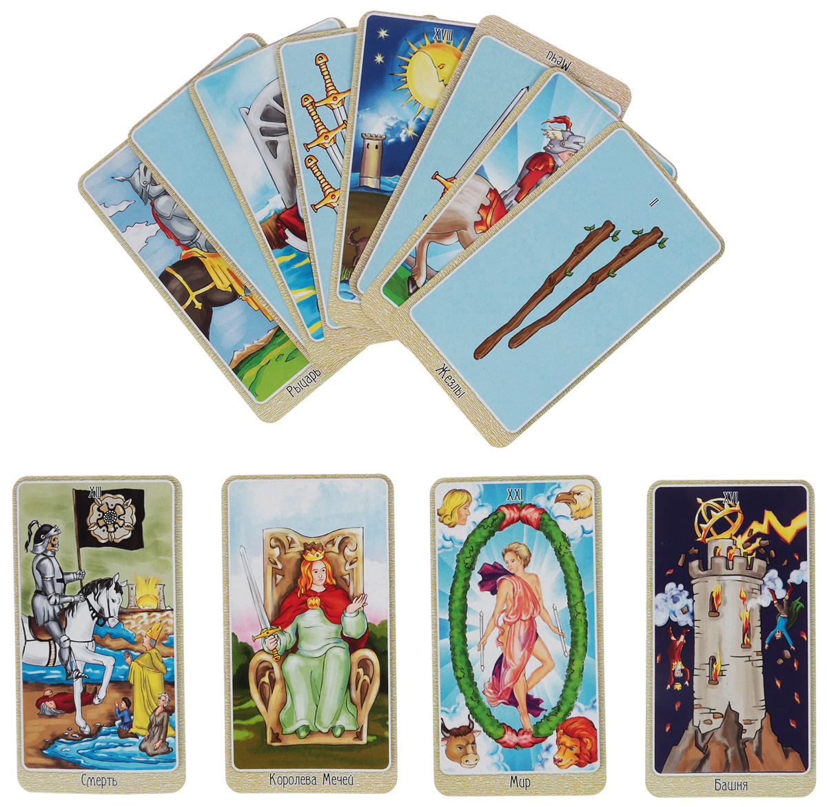 Колода Задира "Ридера-Вейта" состоит из 78 карт и инструкции на русском языке. Карты, выполненные из плотного картона, помогут узнать настоящее и заглянуть в будущее. Размер карты: 6,5 х 11,5 см.