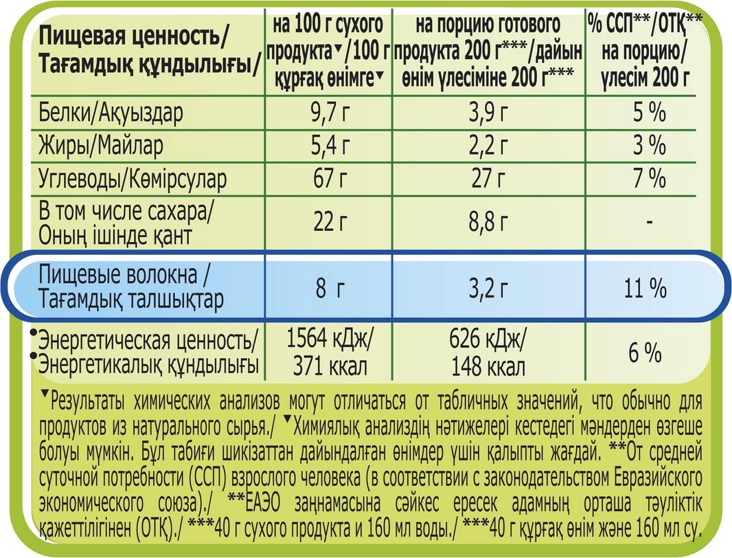 ТипКаша быстрого приготовления