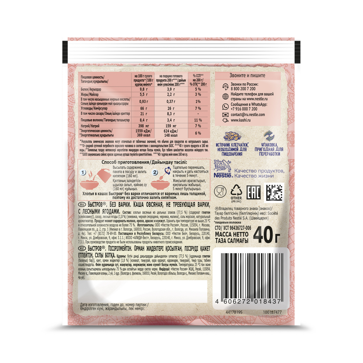 Начни утро с полезных каш БЫСТРОВ! Мы создали каши БЫСТРОВ только из натуральных ингредиентов. В хлопьях сохранены все полезные компоненты овсяного зерна (оболочка, эндосперм и зародыш), а значит максимум полезных свойств. Каждая порция каши является ист