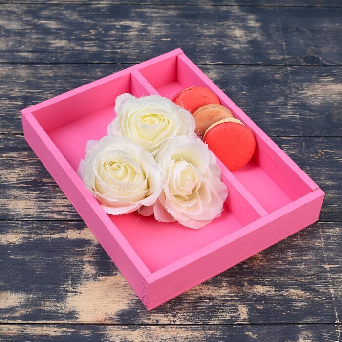 Цвет|Розовый;Форма|Прямоугольная;Длина, см|25.5;Ширина, см|20;Высота, см|4.5;Вид кашпо|Универсальное;Тематика|Однотонная;Материал|Дерево;Вид ручки|Без ручки;Можно оставлять зимой на улице|Да;Комплектация:Кашпо