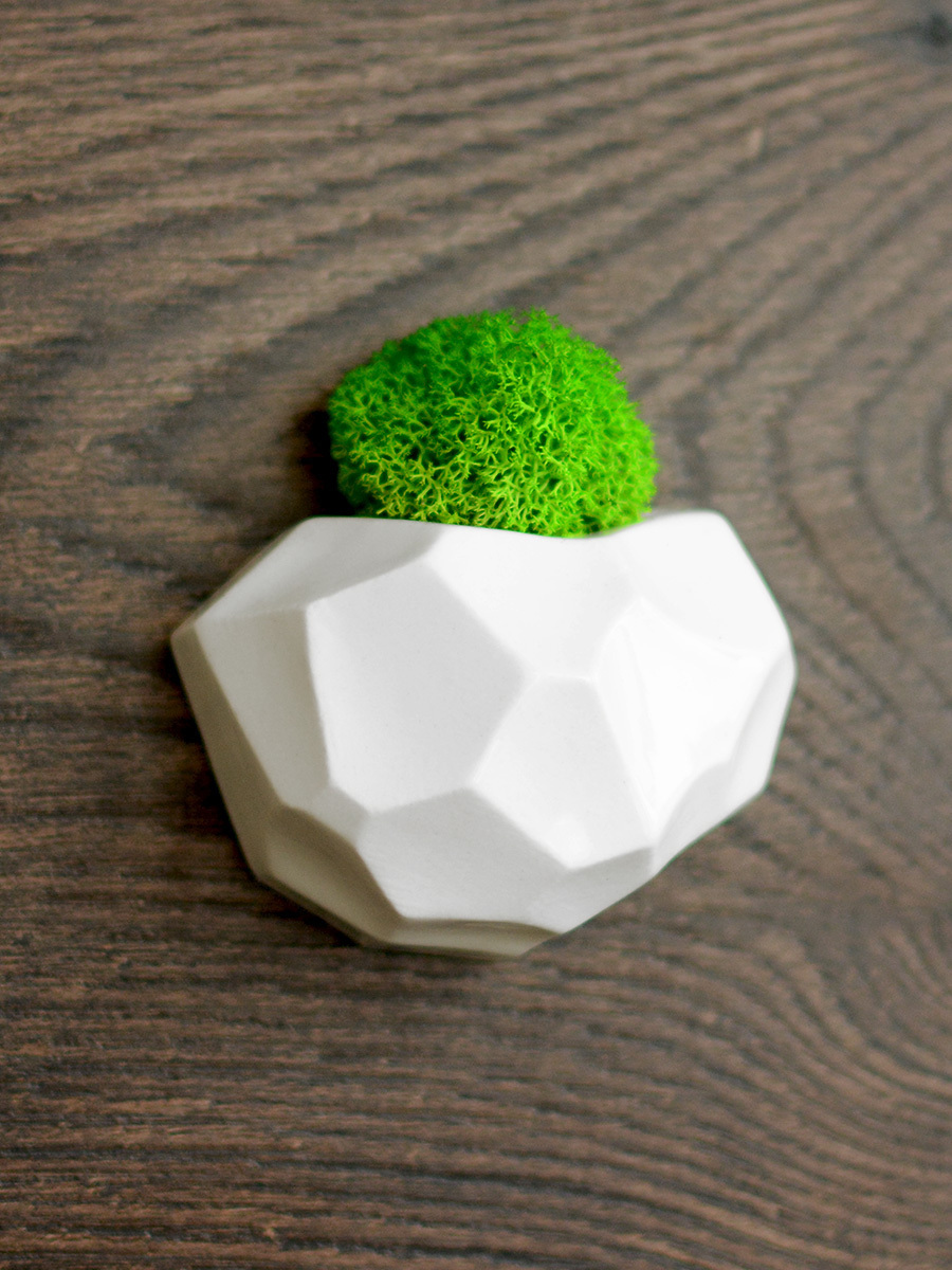 Комплектация:Мини кашпо 1 штОписание:Миниатюрное кашпо на магните в виде камушка. Им можно украсить любые металлические поверхности: холодильник, стеллаж. Кашпо можно использовать как вазочку поставив в него мелкие цветы или веточки; можно посадить небо