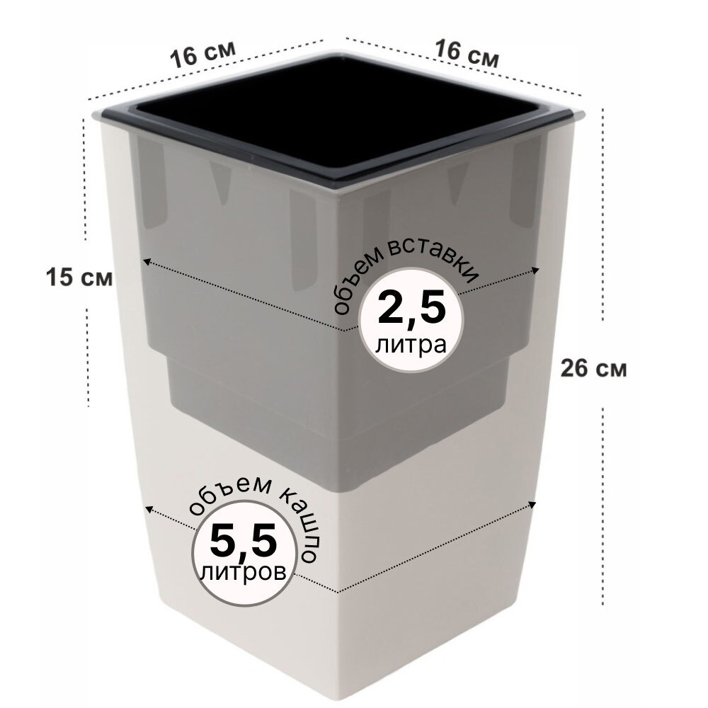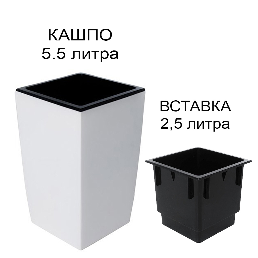 Комплектация:кашпо для цветов пластиковый с вкладкой в белом цвете Описание:Кашпо выполнено из пластика и предназначено для выращивания в нем цветов, растений и трав. Внутренний вкладыш высотой 150 мм. Объем вставки - 2.5л, объем кашпо - 5.5л. Поверхность