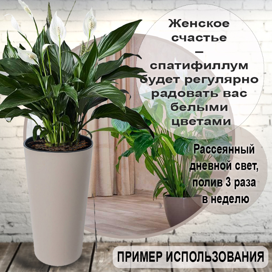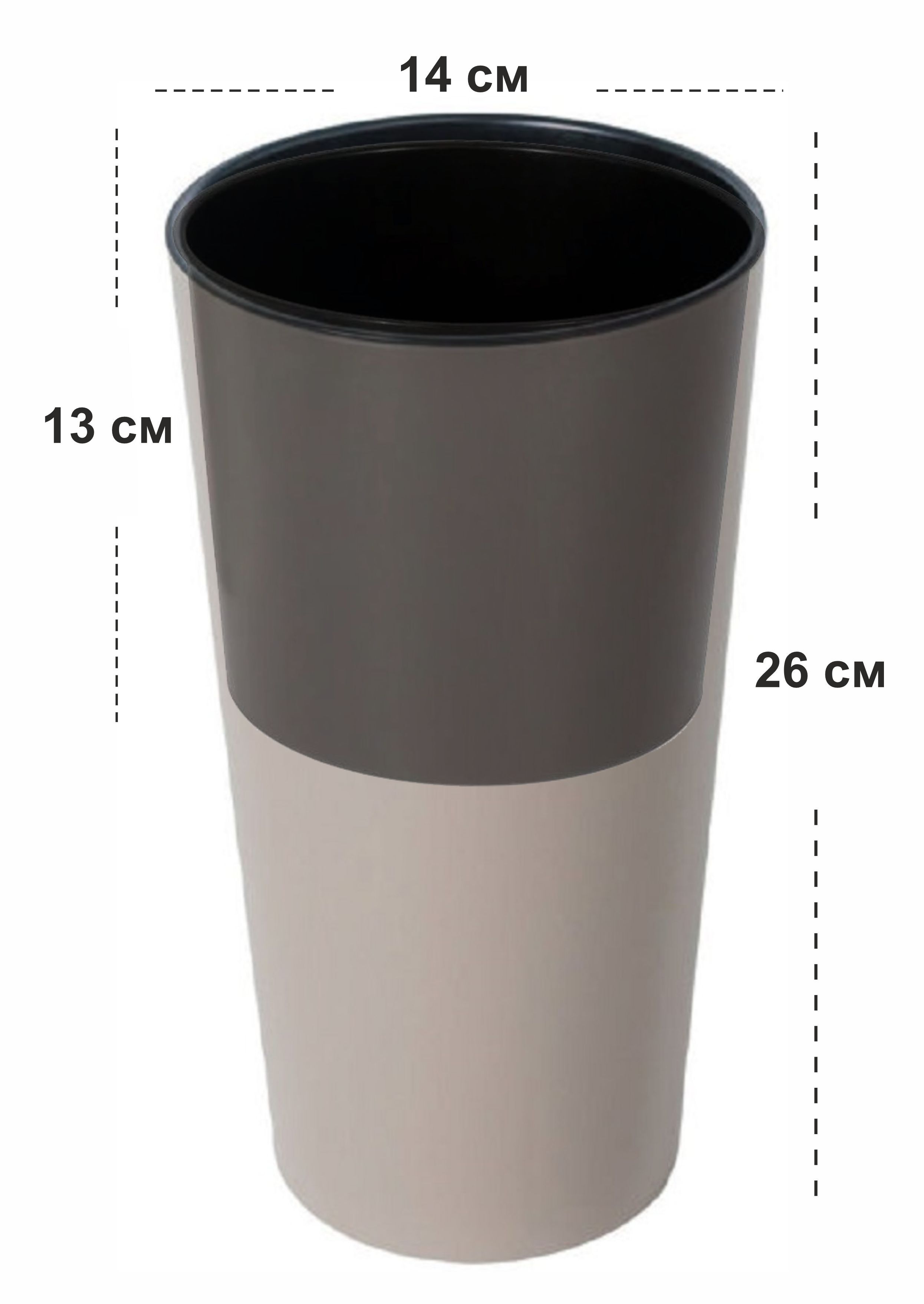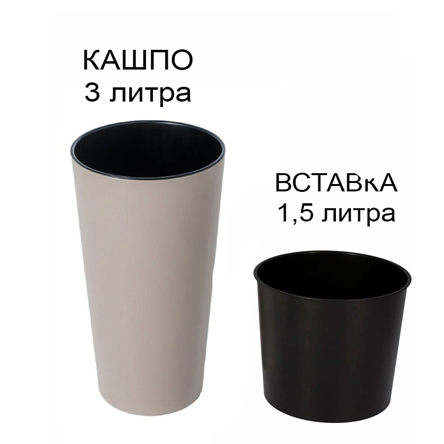 Комплектация:кашпо для цветов пластиковый со вставкой в светло-сером цвете