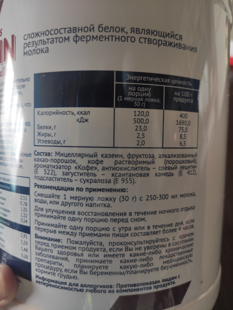 СоставМицелярный казеин, фруктоза, ароматизатор "печенье", лецитин, ксантановая камедь,сукралоза