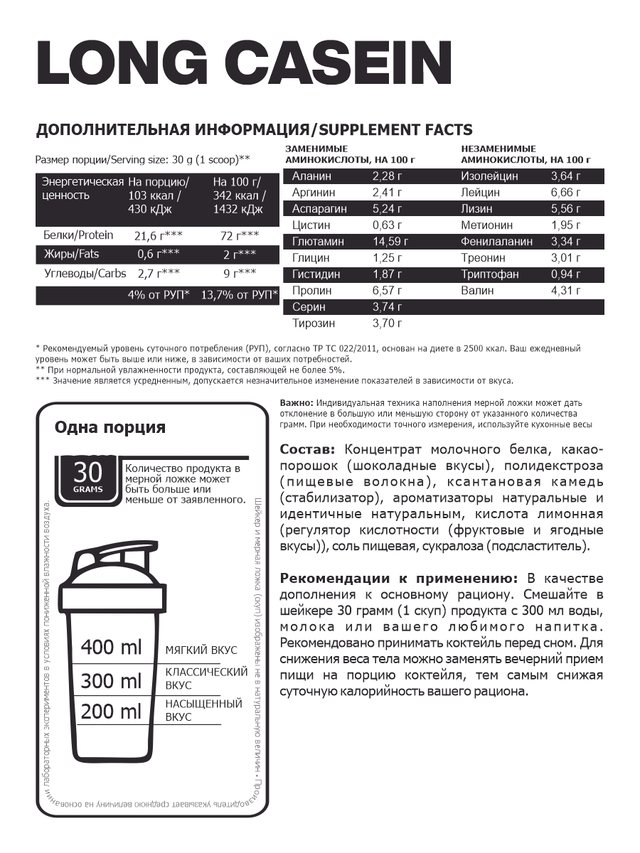 LONG CASEIN – высококачественный мицеллярный казеиновый протеин, дающий максимум эффекта!Вы стремитесь похудеть и привести фигуру в подтянутую форму? Хотите привести мышцы в тонус или помочь им быстрее восстанавливаться после тренировок? А может быть Вы б