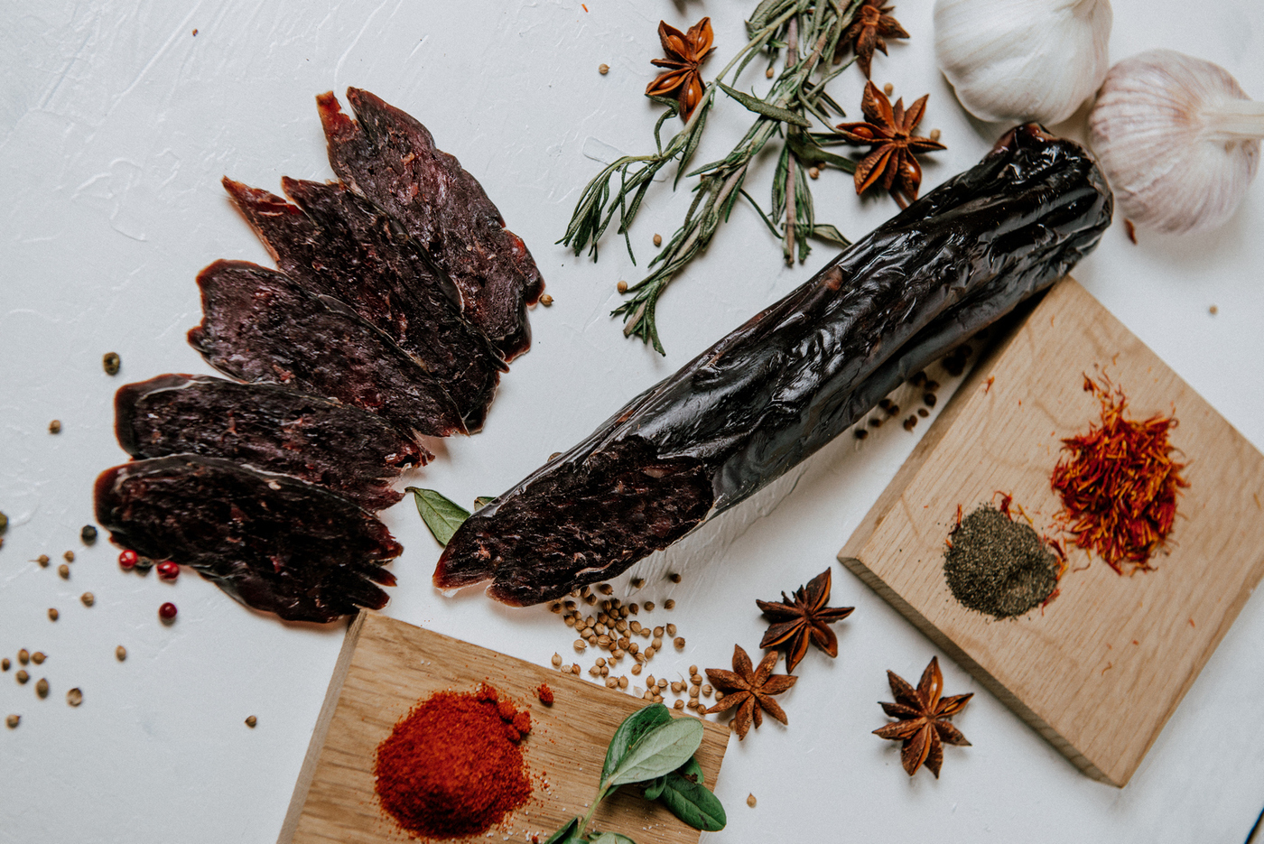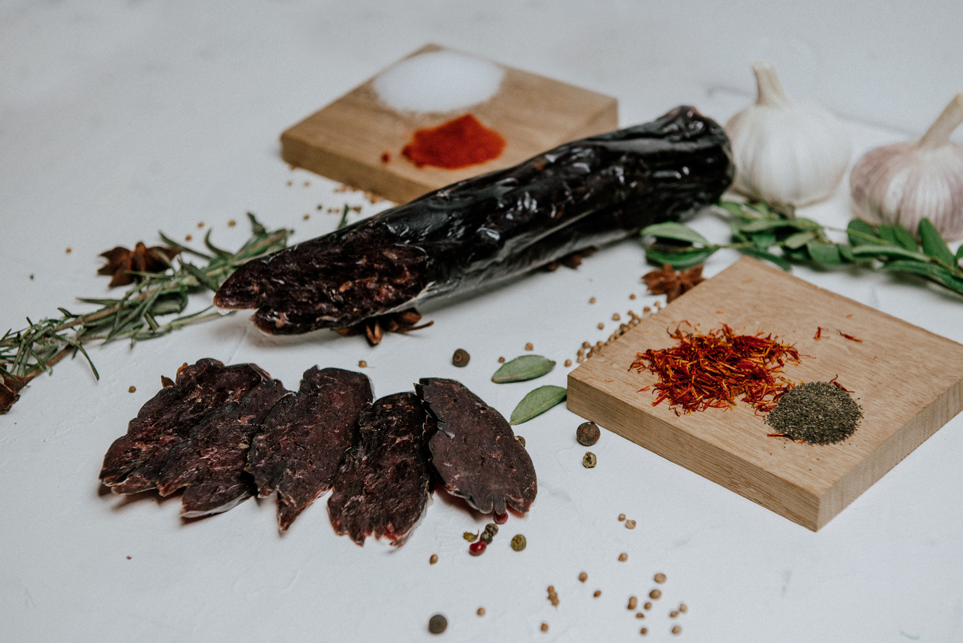 Состав:конина (кусковое мясо), сахар, чеснок, сольУсловия хранения:Хранить в сухих, чистых, вентилируемых помещениях.Срок годности продукции, упакованной под вакуумом 180 дней при температуре не выше +25С. При нарушении вакуума упаковку с сублимированным