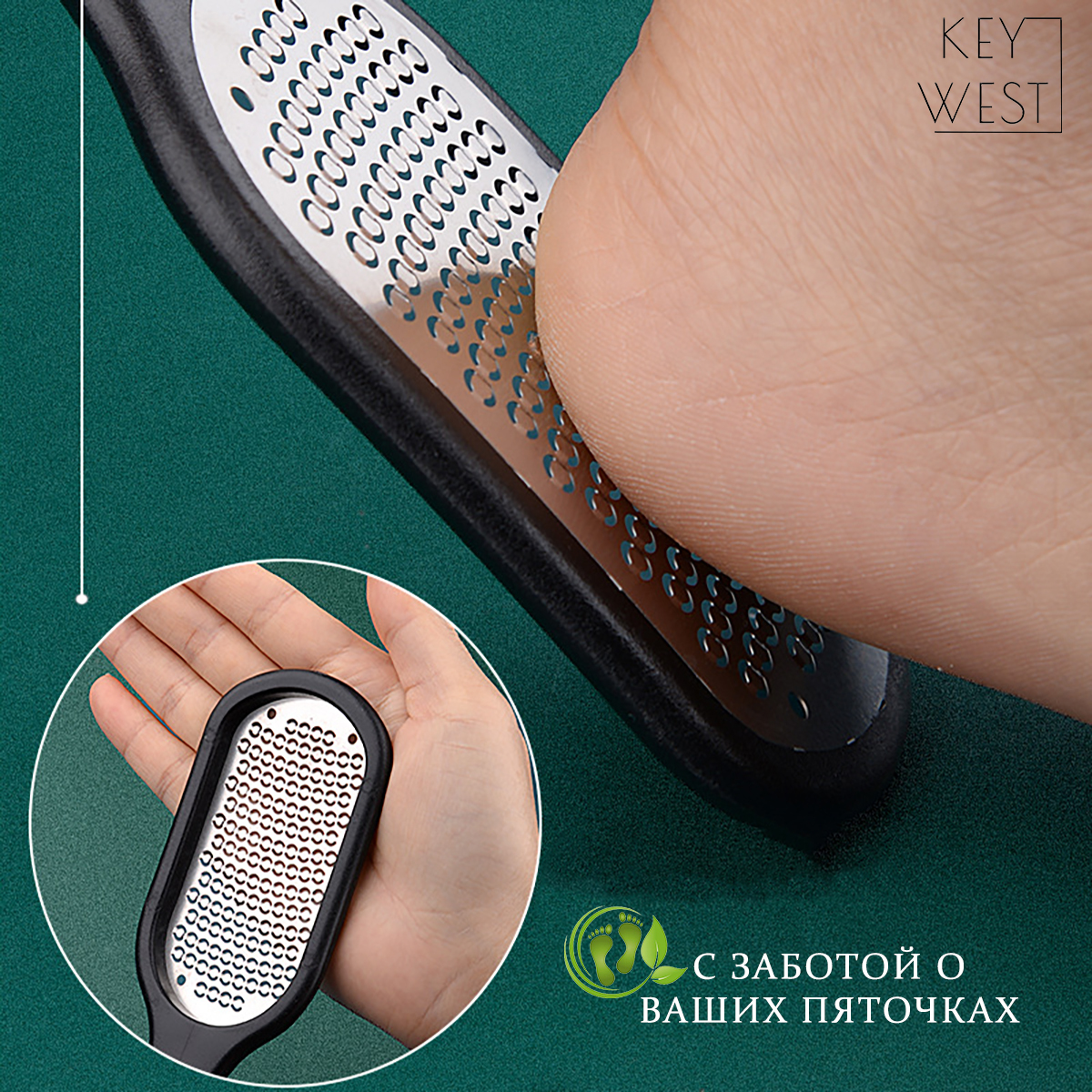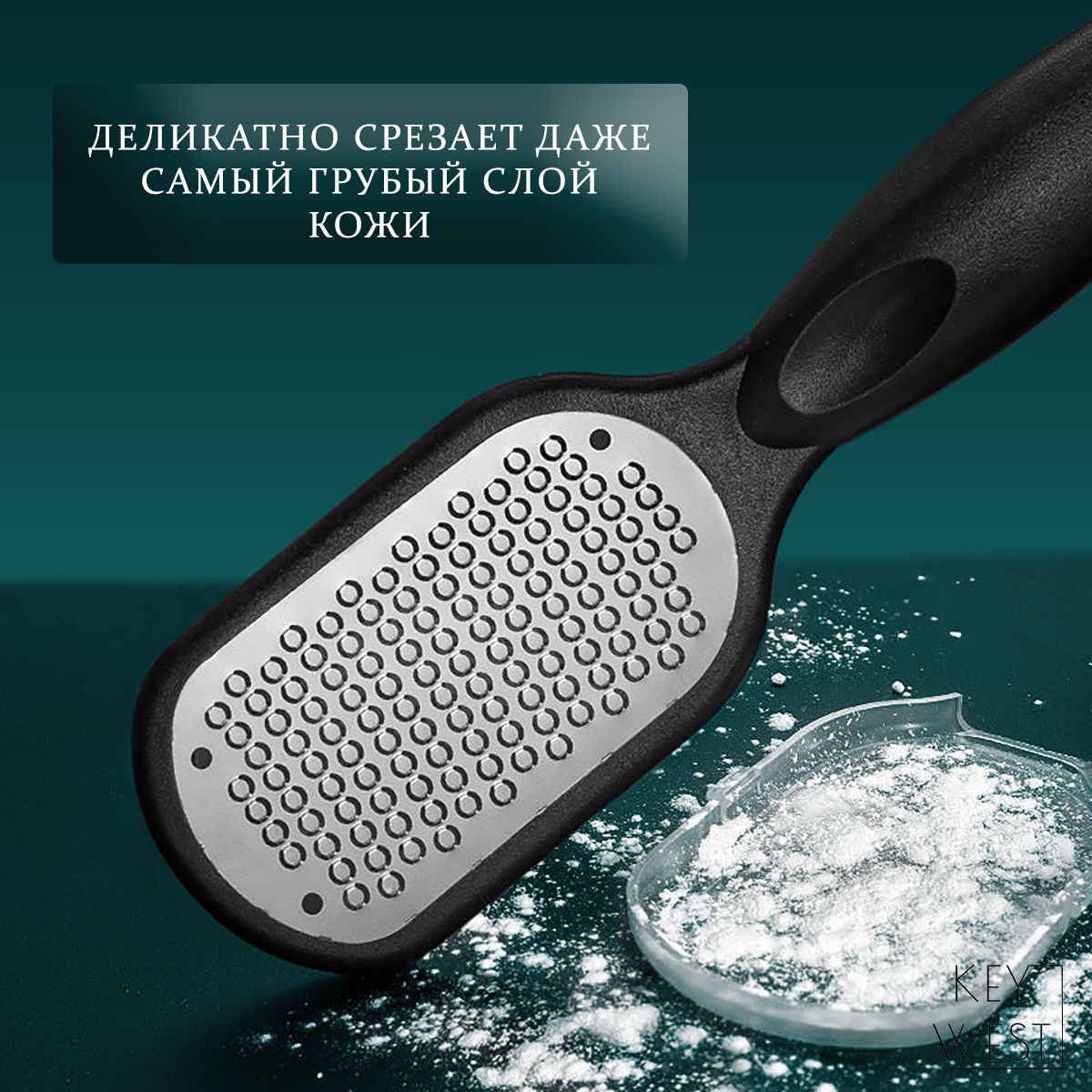 Комплектация:Пилка для пяток - 1 шт.Описание:Металлическая терка для ног KEY WEST идеально подходит для бережной обработки пяток. Поверхность пилки для ног содержит микро закругленные лезвия, которые безопасно и деликатно срезают даже самый грубый слой ко