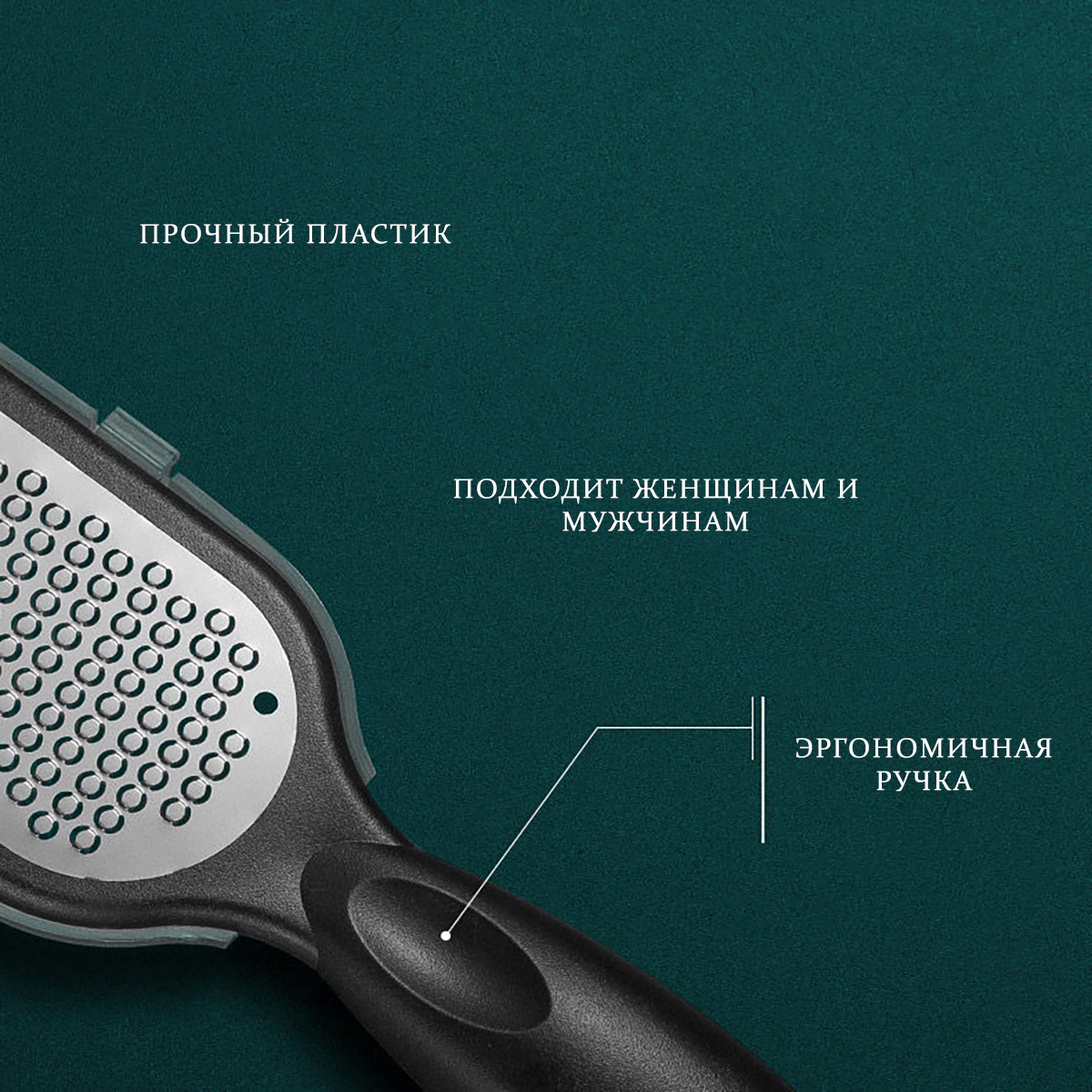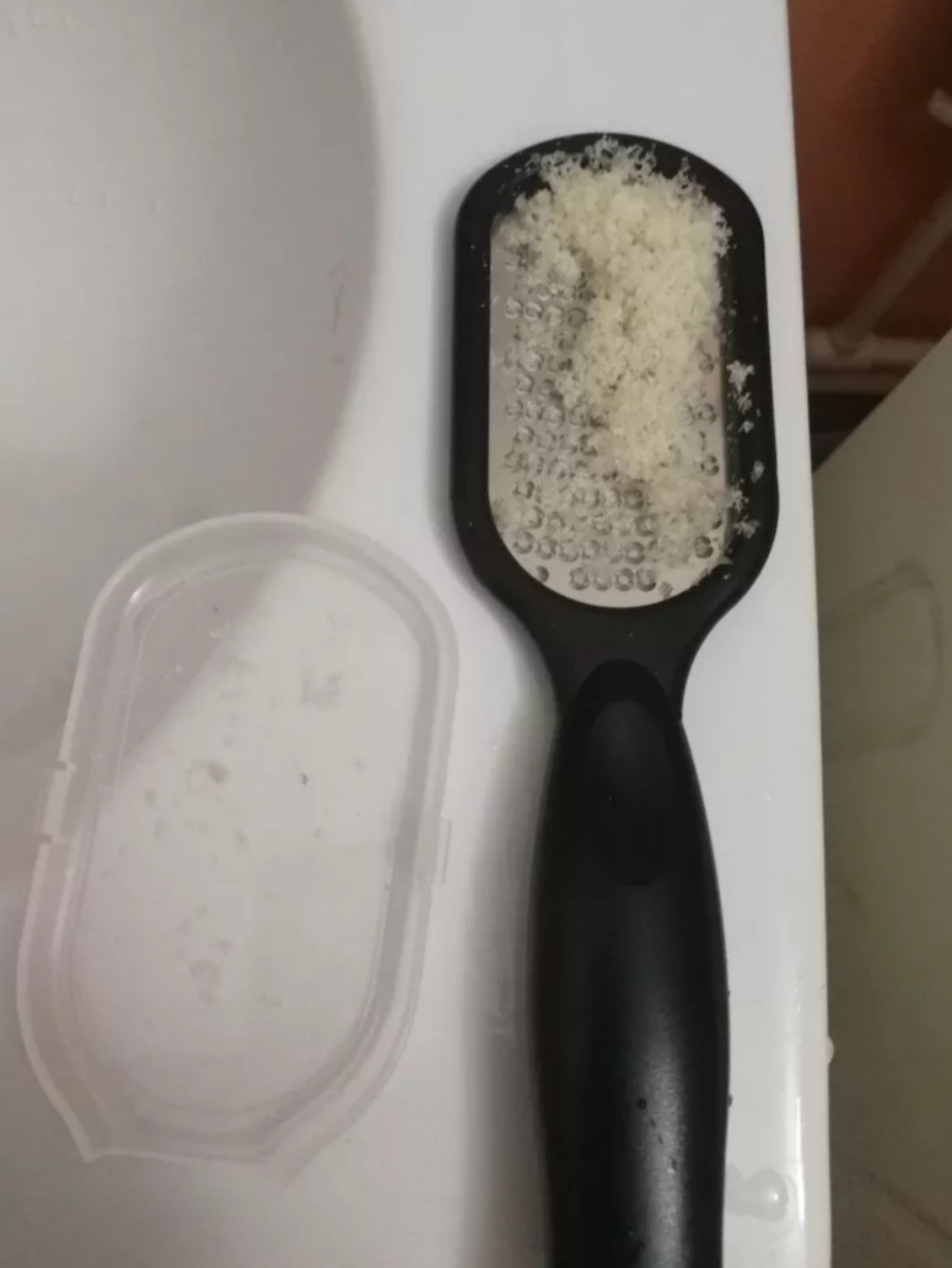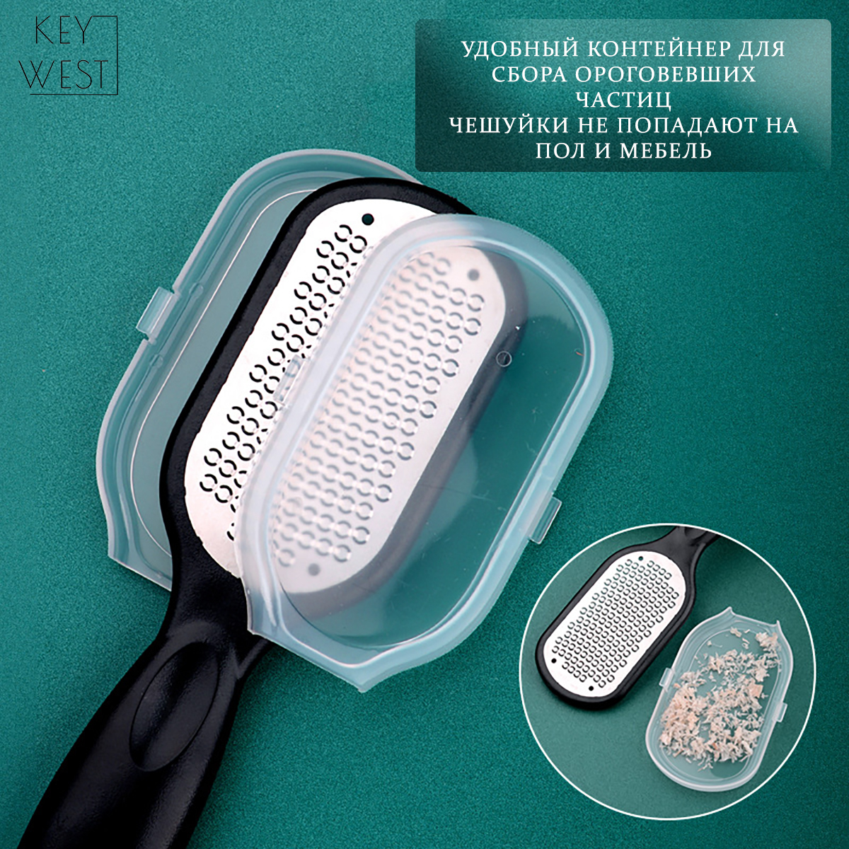Способ применения1.Замочите ноги в течение 10 минут в теплой воде, протрите сухой салфеткой. 2. Используйте терку, обрабатывая ороговевшие участки. Если контейнер забился ороговевшими частицами, то промойте его под струей воды и продолжайте использование. 3. Зашлифуйте об