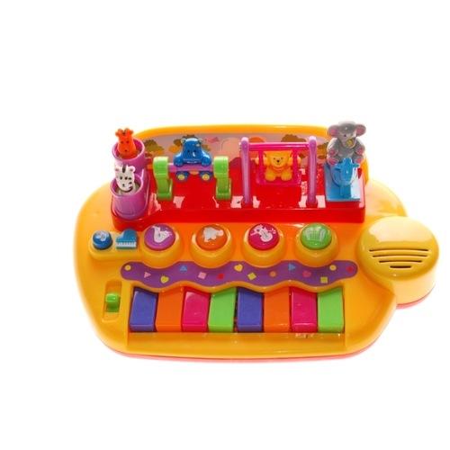 Дополнительная информацияразмер упаковки: 14 x 30 x 12 см; 5 музыкальных инструментов: пианино, саксофон, гармонь, скрипка, колокольчик; мелодии