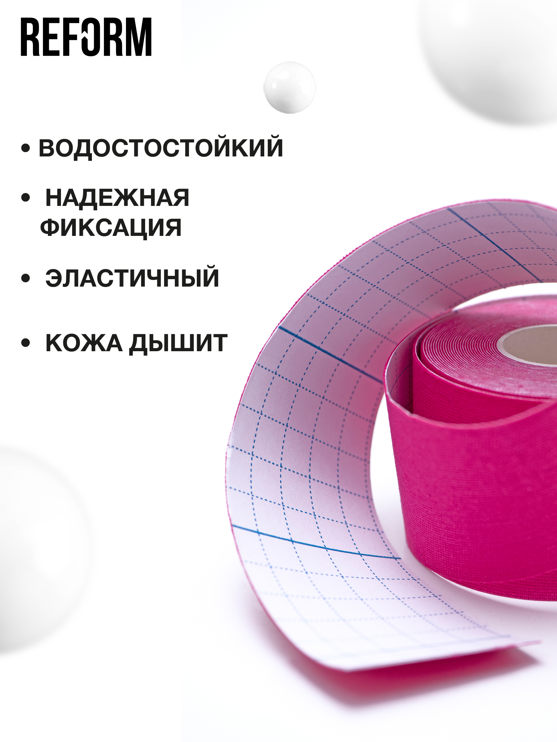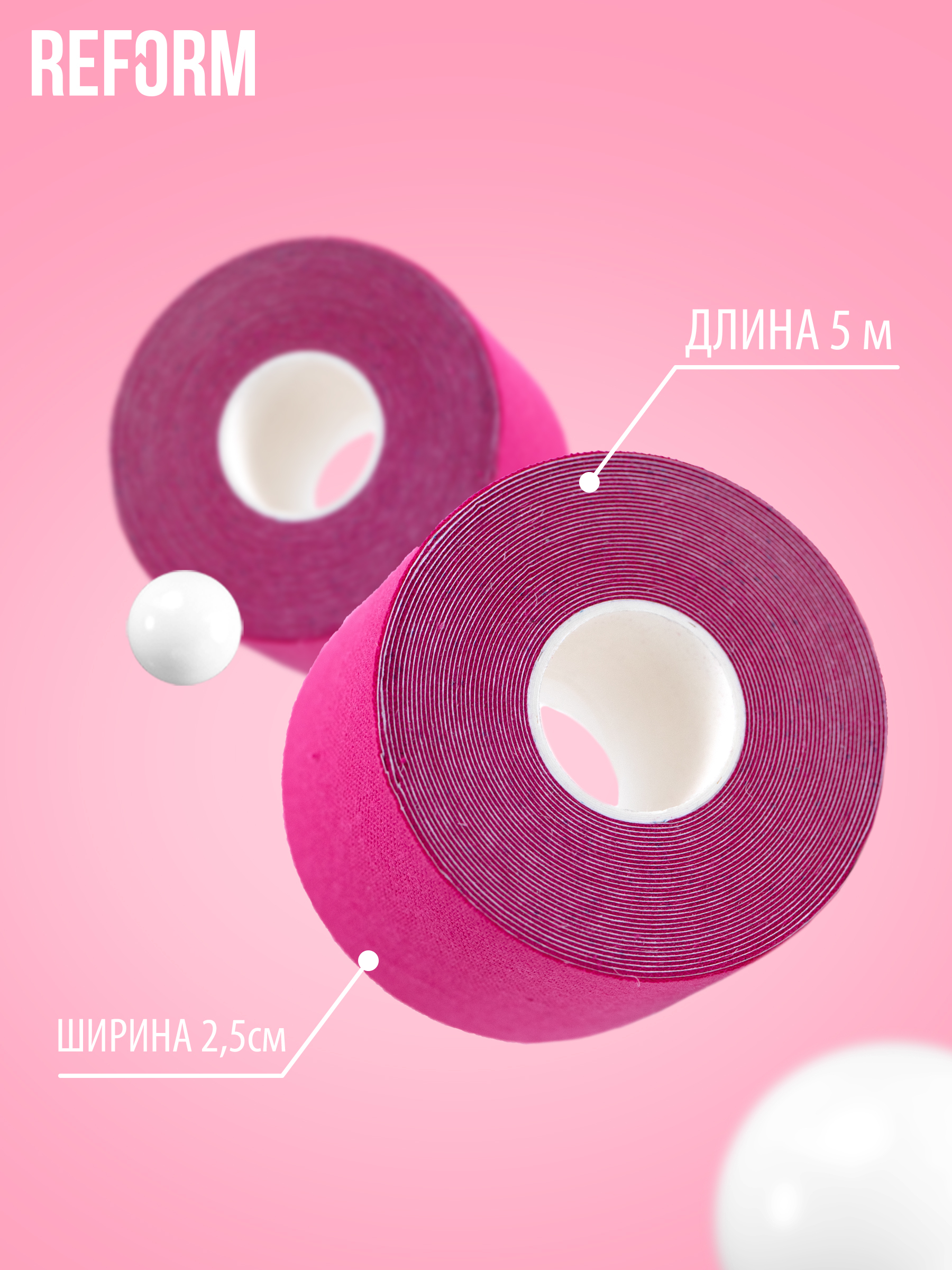 Кинезио тейп лента для лица и тела от Reform Shape Matters 2 рулона 2.5см каждый, 5 метров - это лента на клейкой гипоаллергенной основе. Эластичность: 140% -180%. Благодаря особенностям структуры, она не задерживает пот и обеспечивает доступ воздуха к ко