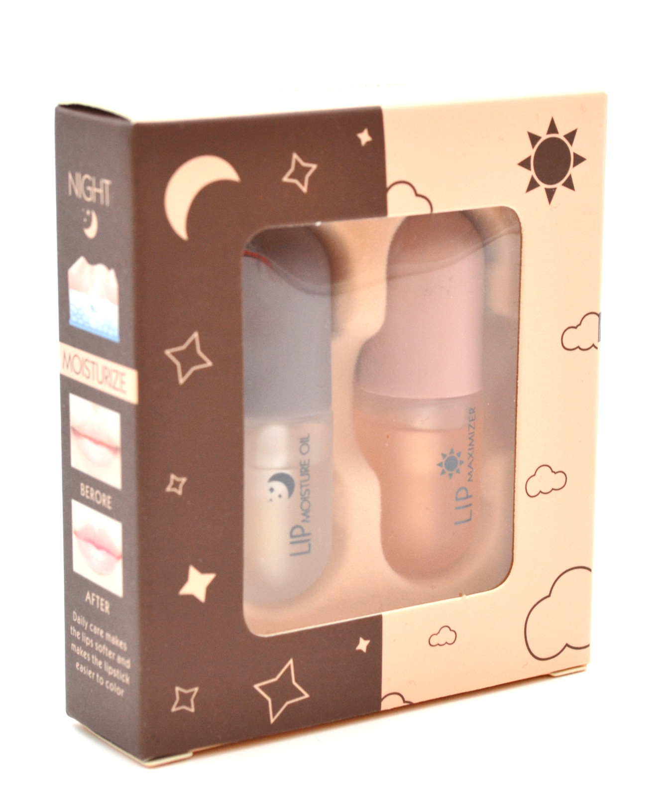 Способ применения:Нанесите бальзам на предварительно очищенную кожу губ, после чего нанесите на увлажненные бальзамом губы блеск для губ.Kiss Beauty Набор блесков для губ с эффектом увеличения День Ночь 3+3 мл / Блеск-бальзам плампер для губ / Увлажняющий