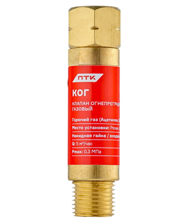Комплектация:Клапан огнепреградительный газовый КОГ (на резак или горелку) М16х1,5LH предназначен для защиты от противотока газа, а также для защиты от разрыва газового резинотканевого рукава и его возгорания при обратном ударе пламени. Клапан устанавлива