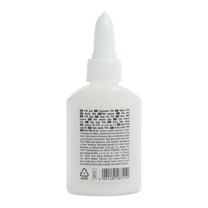Комплектация:Клей ПВА 40мл ErichKrause "Standard" 48721Описание: