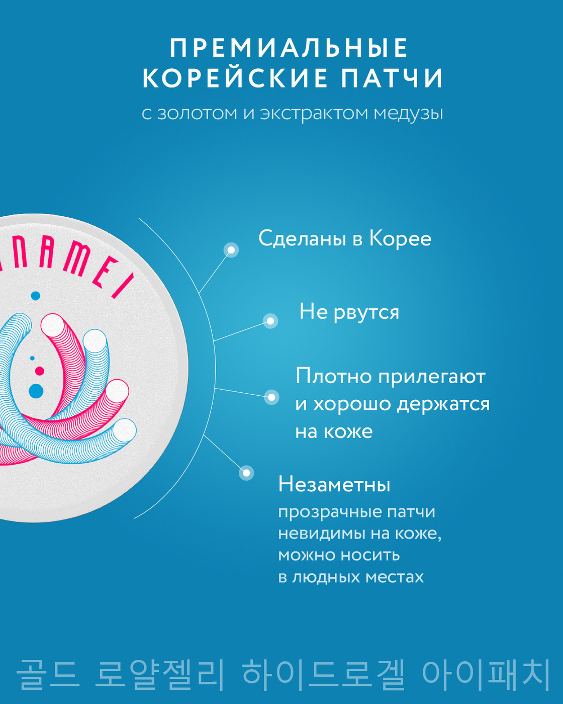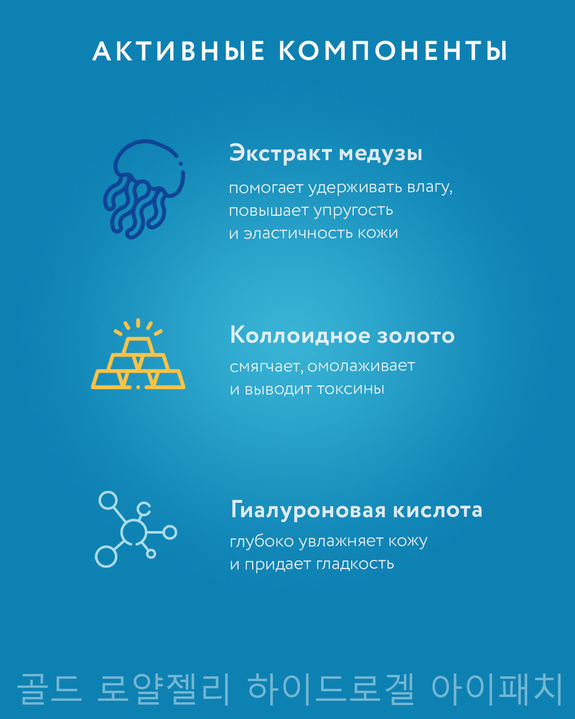 Премиальные корейские патчи под глаза интенсивно увлажняют и разглаживают кожу вокруг глаз, устраняют следы усталости, придают коже естественное сияние и делают морщины менее заметными.Экстракт медузы стимулирует выработку коллагена и эластина, замедляет
