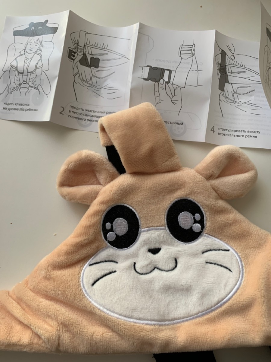 Запатентованный продукт.Клювонос с дополнительным креплением.С обратной стороны трех-лучевое крепление с регулируемыми резинками. Клювонос надежно поддерживает голову ребенка во время сна в автокресле и не сползает со лба ребенка, так как система креплени