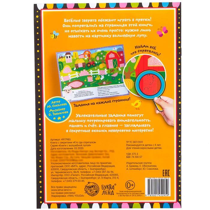 Книга с секретами «Кто где спрятался» содержит целых 170 секретных окошек. Внутри малыш найдёт увлекательные задания, которые помогут ему потренировать внимательность, память и счёт.Ребёнку предстоит сыграть в прятки с озорными зверушками — они попряталис