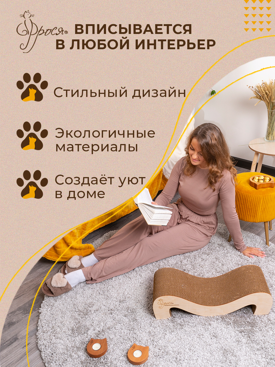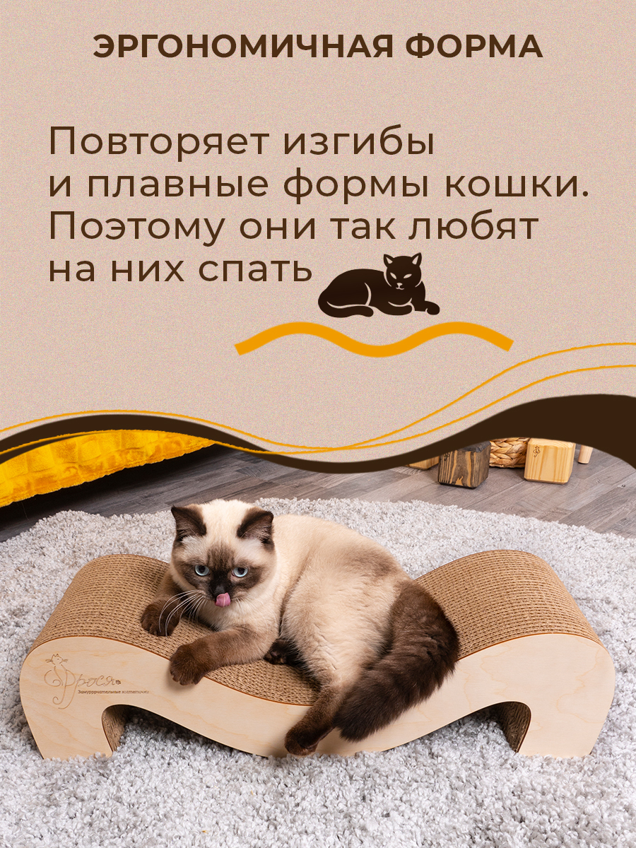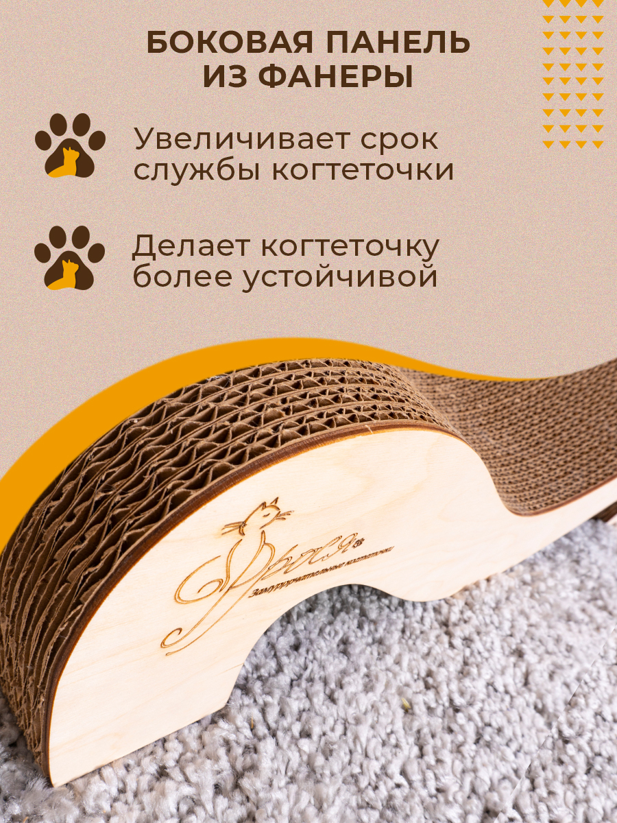 Самая удобная и многофункциональная серия когтеточек из гофрокартона - это когтеточки "Фрося".- Картонная когтедралка "Лежанка" очень нравится котятам, кошкам и котам даже без использования мяты!- Лежанка напольная нестандартной формы, отличается от инфин