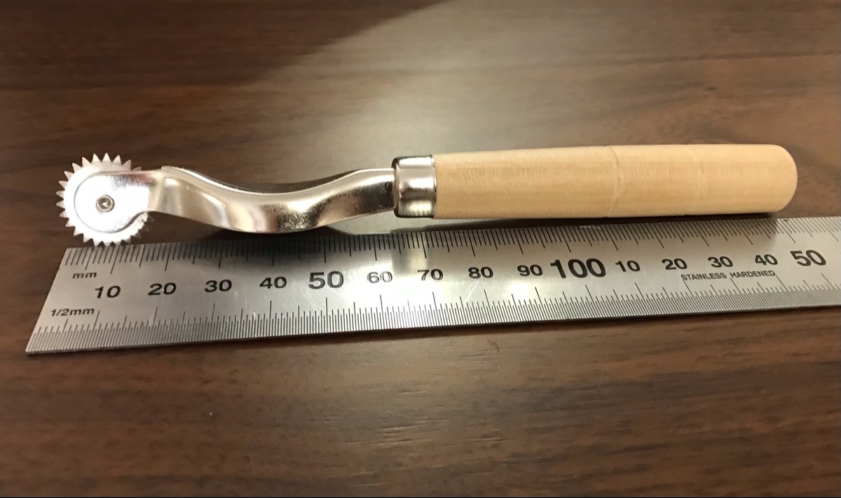 Копировальный ролик предназначен для аккуратного и точного переноса выкройки на ткань с помощью копировальной бумаги. Состоит из деревянной ручки, на которой закреплен вращающийся металлический ролик. Колесико с затупленными краями, подходит даже для тонк