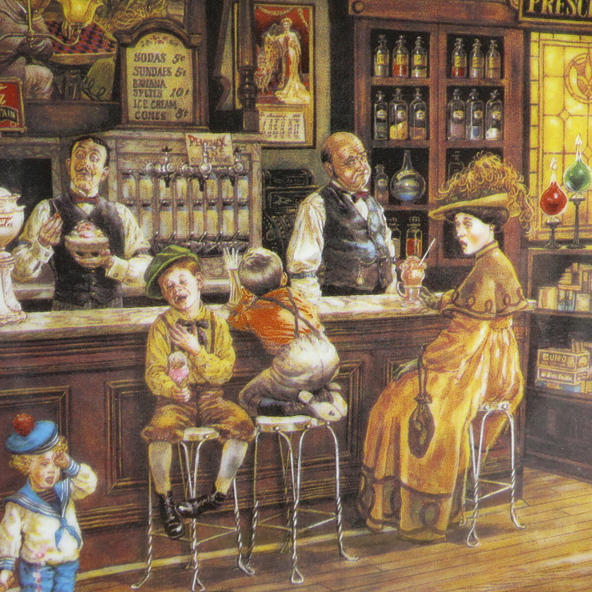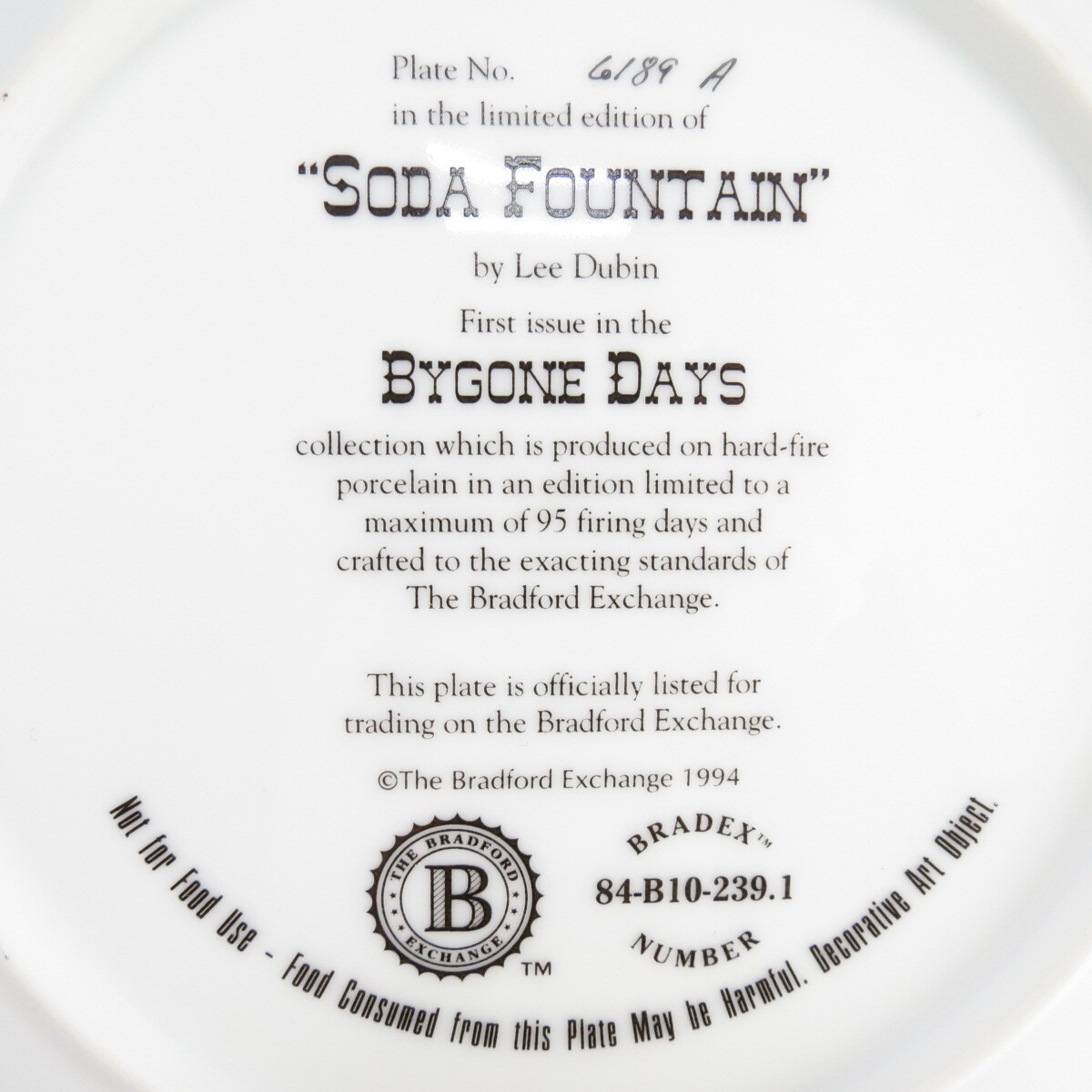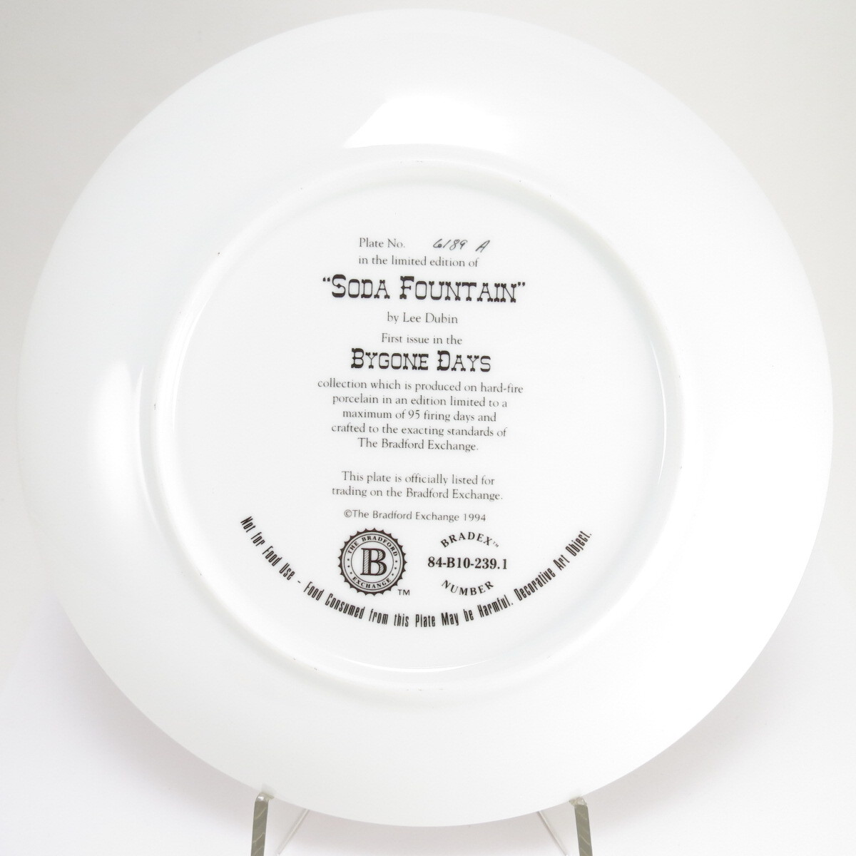 Декоративная коллекционная фарфоровая тарелка из серии "Минувшие Дни".На тарелке изображен бар начала ХХ века. Работа художника Ли Дубина. Тарелка пронумерованная уникальным номером, а сама серия ограничена по времени выпуска.Название тарелки - Фонтан Со