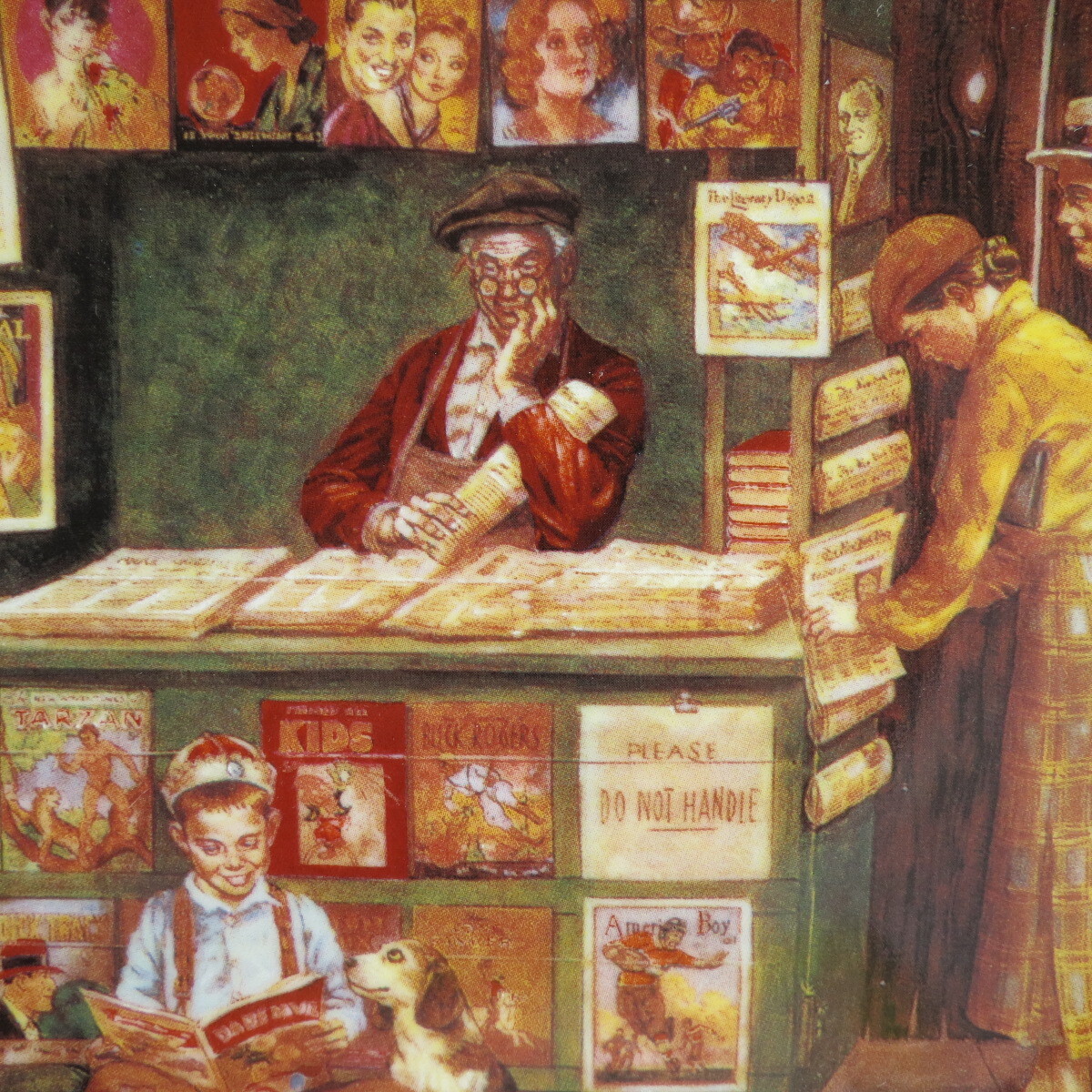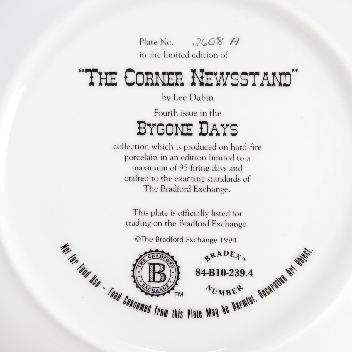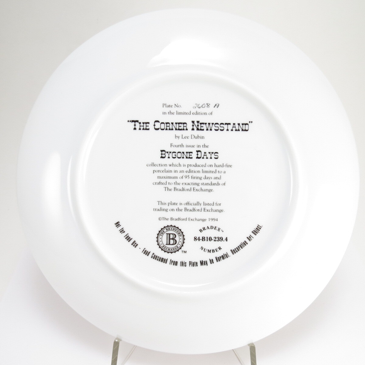 Декоративная коллекционная фарфоровая тарелка из серии "Минувшие Дни".На тарелке изображены покупатели у газетного киоска. Работы художника Ли Дубина. Тарелка пронумерованная уникальным номером, а сама серия ограничена по времени выпуска.Название тарелки