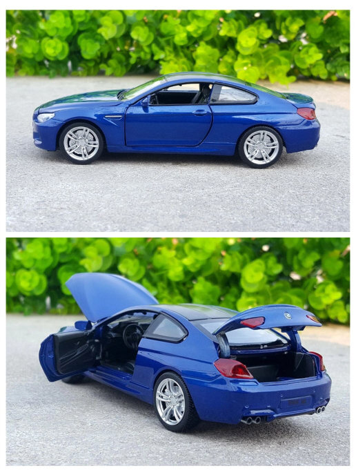 Коллекционная машинка BMW M6 прекрасно дополнит вашу коллекцию. Модель изготовлена в масштабе 1:32 и точно детализирована. Высококачественный сплав металлов, резина и пластик придают модели дорогой и благородный вид. В интерактивной машинке открываются дв