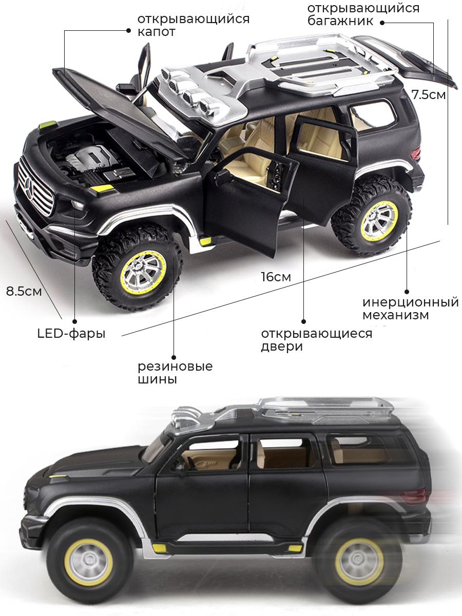 Особенности машинокИнерционный механизм, Звуковые эффекты, Световые эффекты, Открытие/закрытие дверей, Открытие/закрытие капота, Отрытие/закрытие багажника