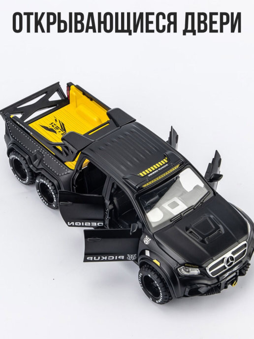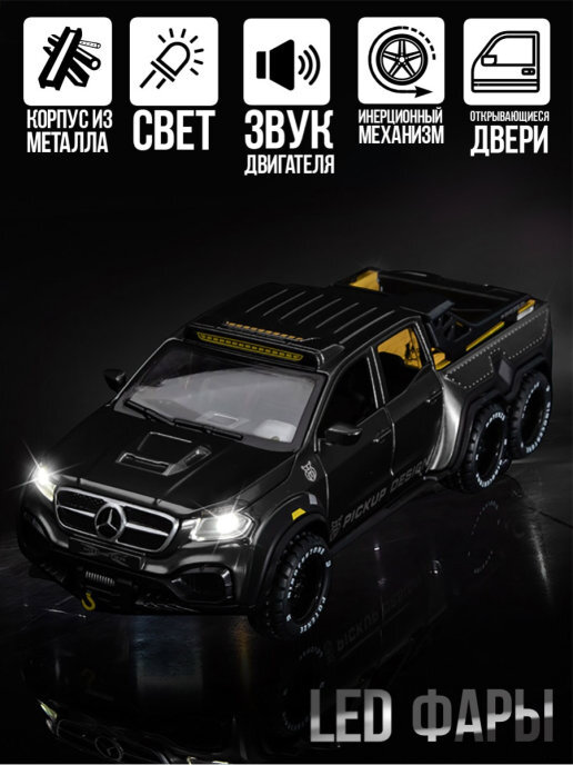 Металлическая инерционная модель мерседес Benz AMG X-Class 6х6 - коллекционная машинка 20,5 см в длину. Открываются все двери , багажник, капот. Детально проработанный салон. У автомобиля загораются передние и задние фонари, а так же это сопровождается зв
