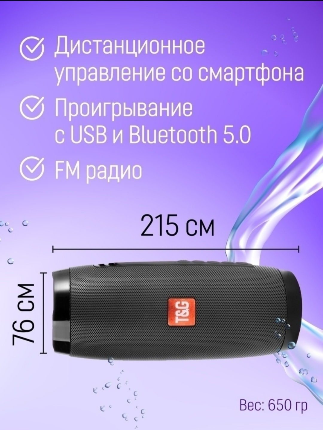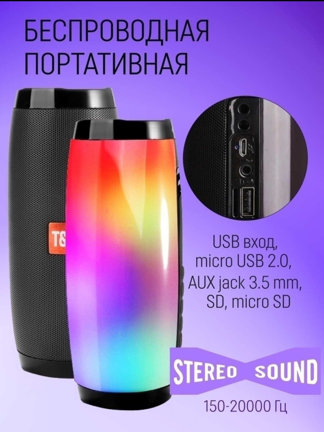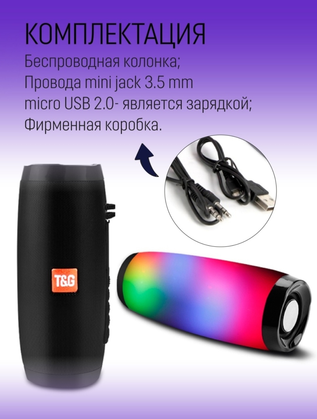 Комплектация:Инструкция - 1 штПортативная колонка - 1 шт AUX кабель - 1 шт uab кабель - 1 штСписок совместимых устройств:AndroidiOSWindowsОписание:Стильная беспроводная колонка с качественным звуком. Диапазон частот 120-20 000 Гц обеспечивает сбалансирова