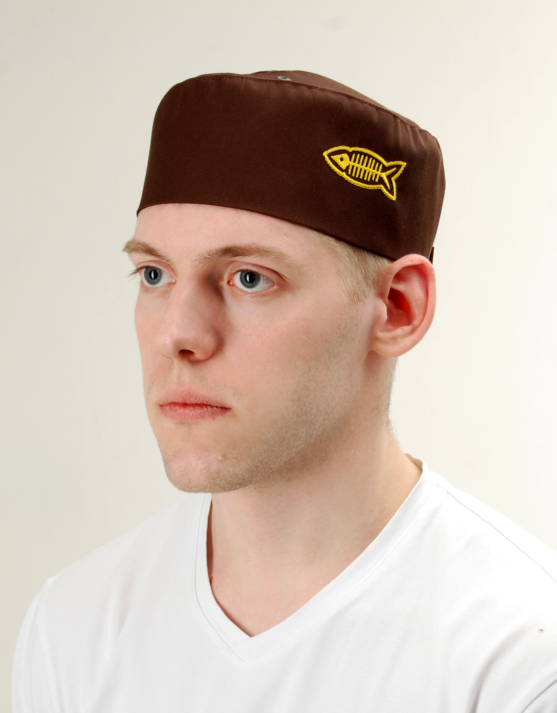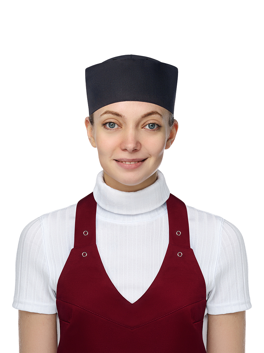 Шапка-таблетка повара б/размера, на липуке, с люверсами для вентиляции. Производство Россия. Состав: 100% хлопок. Машинная стирка при 40С.
