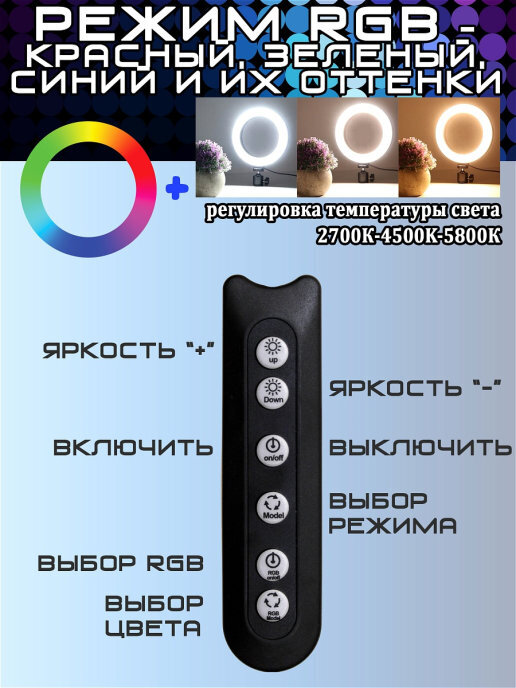 Кольцевая светодиодная лампа 26 см со штативом и 40 световых схем используется для селфи, видео съемки, стрима и т.дВ селфи кольцо на штативе, лампа кольцевая цветная 15 световых схем и 10 ступеней яркости.Провод с USB-разъёмом может питаться от любого US