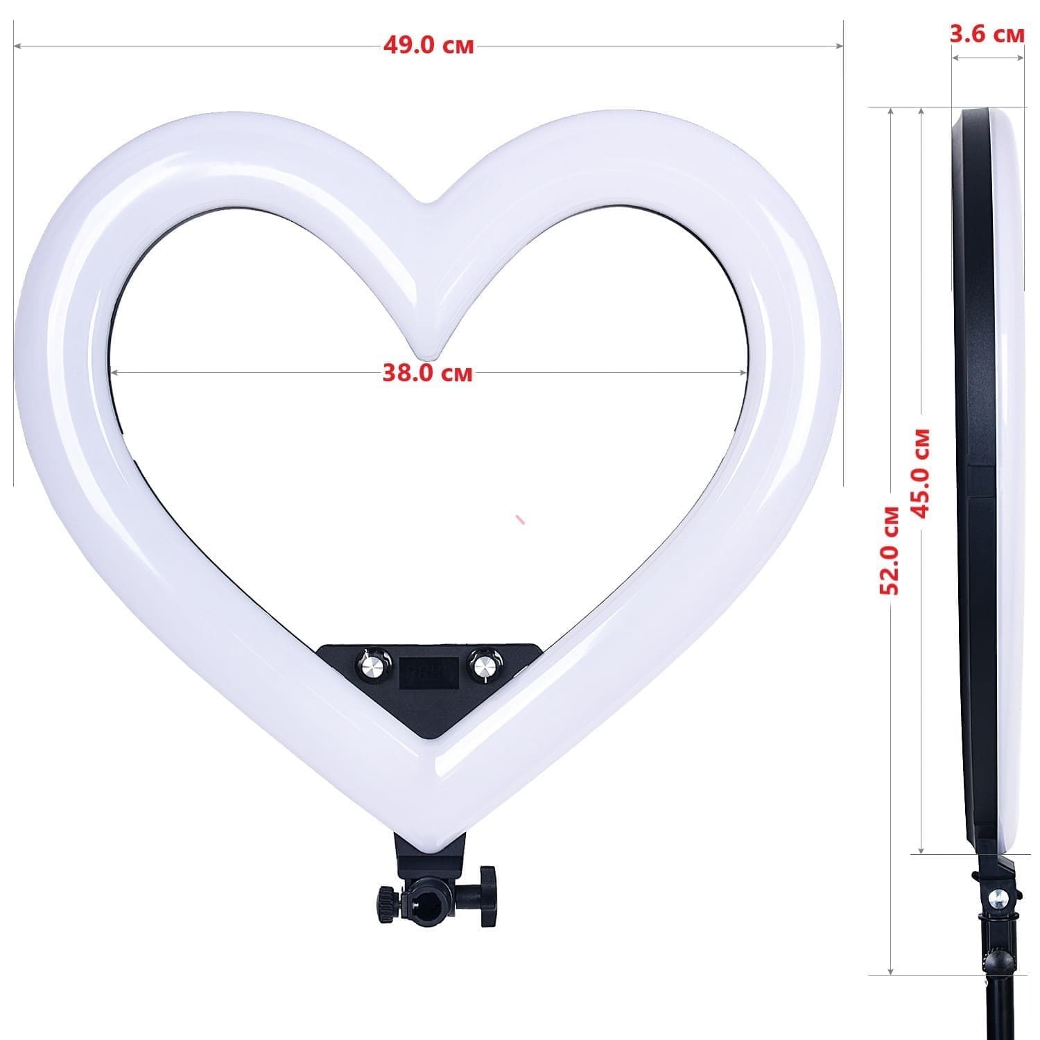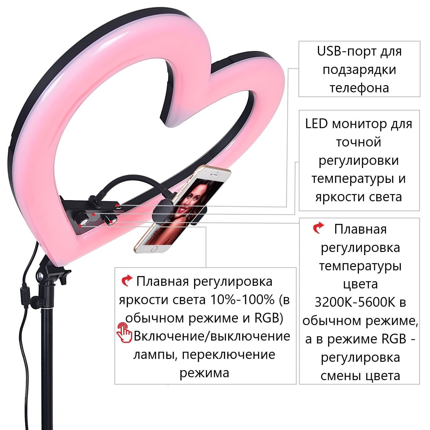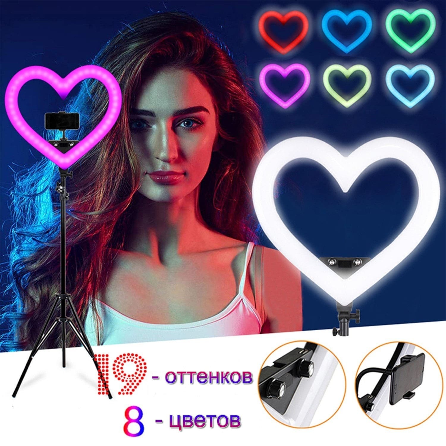 Кольцевая лампа Сердце 45 см RGB - это высококачественная профессиональная лампа, которая считается одной из самых популярных и универсальных кольцевых ламп, подходящая для блогеров, фотографов, визажистов, тату-мастеров, парикмахеров и организаторов маст