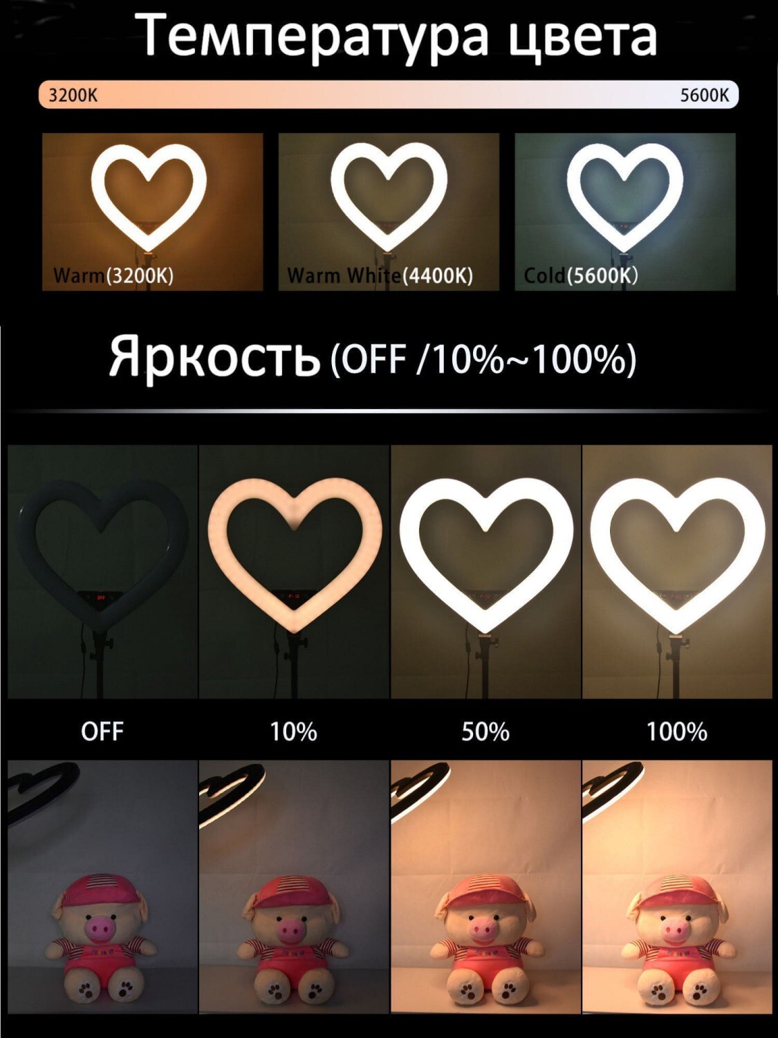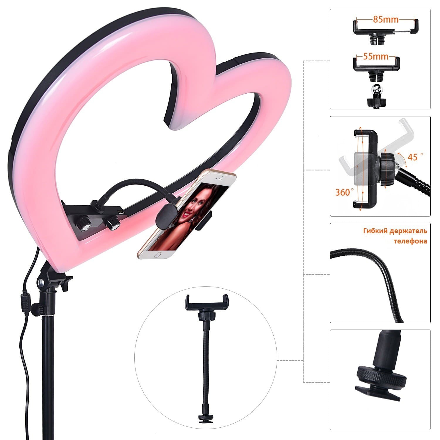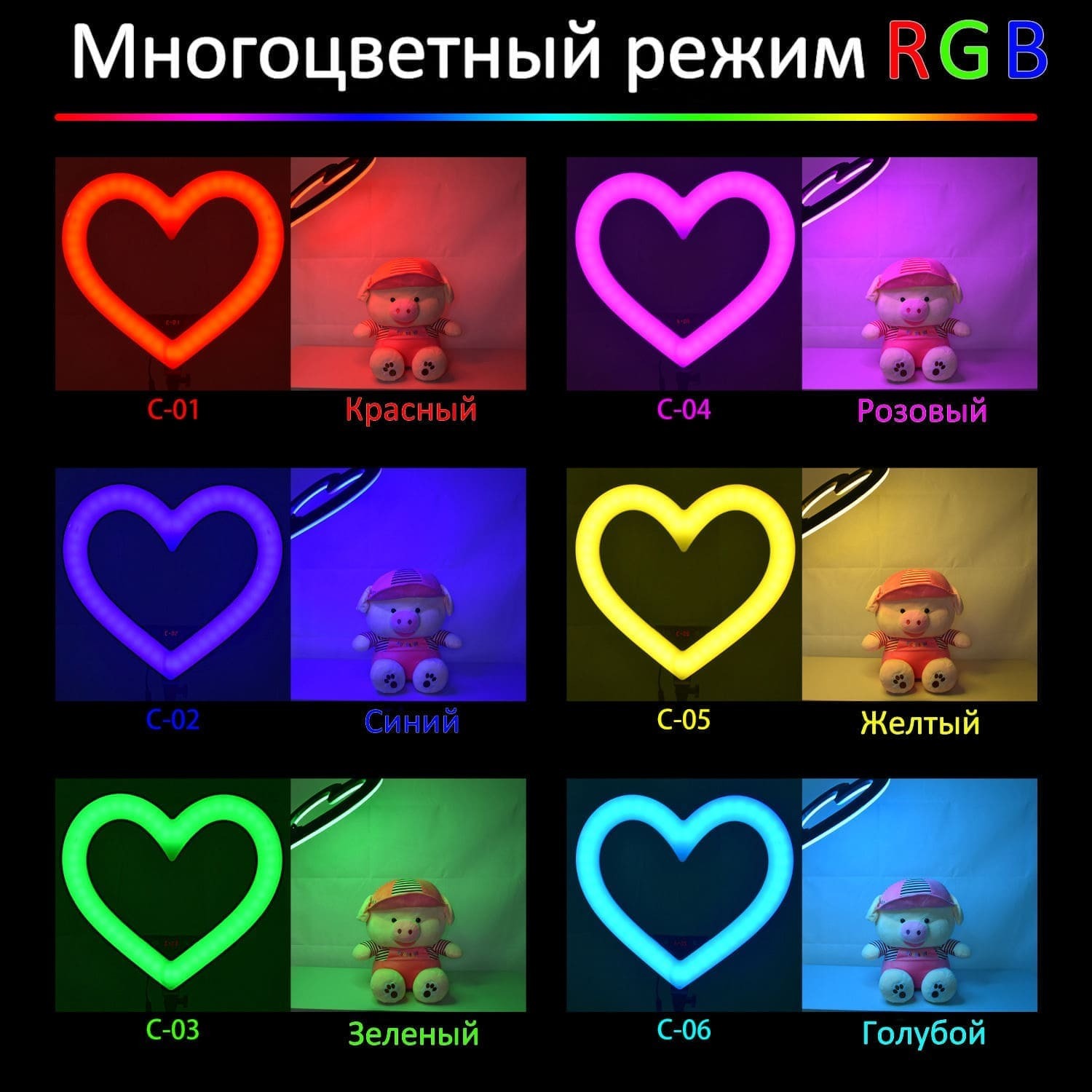 Кольцевая лампа Сердце 45 см RGB - это высококачественная профессиональная лампа, которая считается одной из самых популярных и универсальных кольцевых ламп, подходящая для блогеров, фотографов, визажистов, тату-мастеров, парикмахеров и организаторов маст