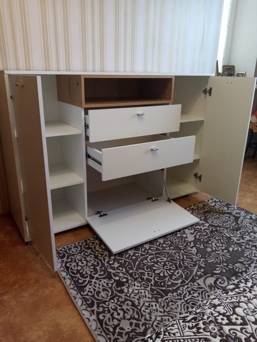 2 в 1 . Комод и тумба под телевизор. Стильный , удобный и функциональный. Хорошо зарекомендовал себя в гостиных, спальнях и детских. Так же гармонично дополнит ваш интерьер в офисе. Комод- тумба выполнен из качественного ЛДСП с учётом применения всех ос