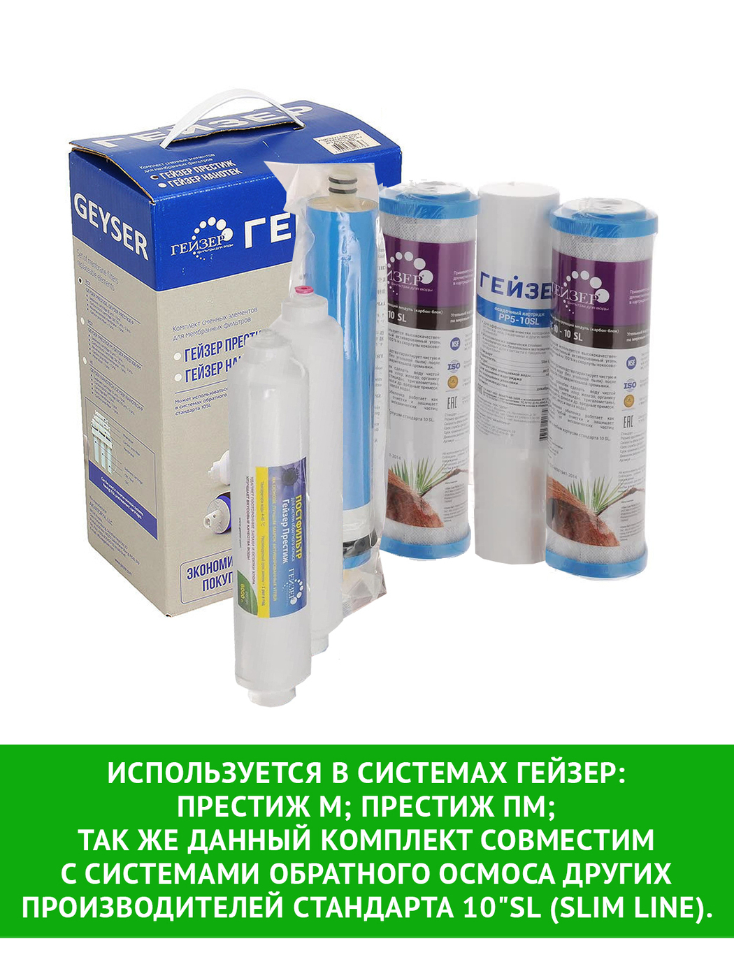Комплект картриджей Гейзер "RO2" предназначен для замены исчерпавших свой ресурс картриджей в системах обратного осмоса Гейзер Престиж с минерализатором. Используется в системах Гейзер: Престиж М. Престиж ПМ. Так же данный комплект совместим с с