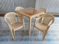 Комплект пластиковой мебели (стол квадратный "Невада" 815х815 бежевый + 4 кресла "Фламинго" бежевых) арт.380 БД/042 Б