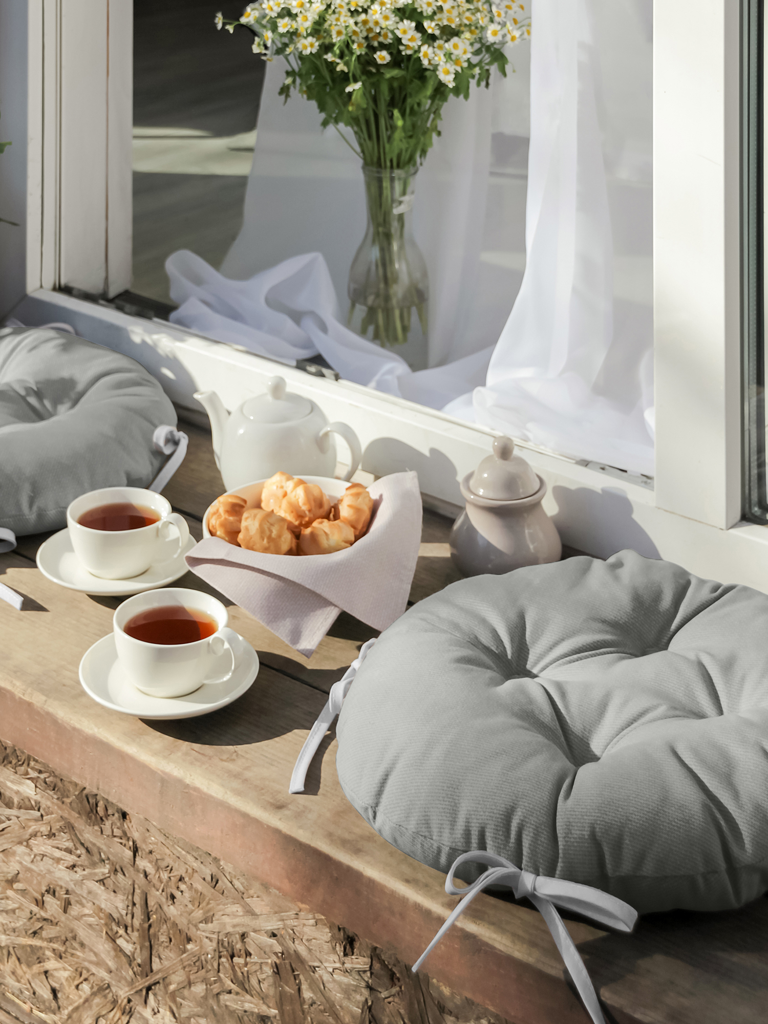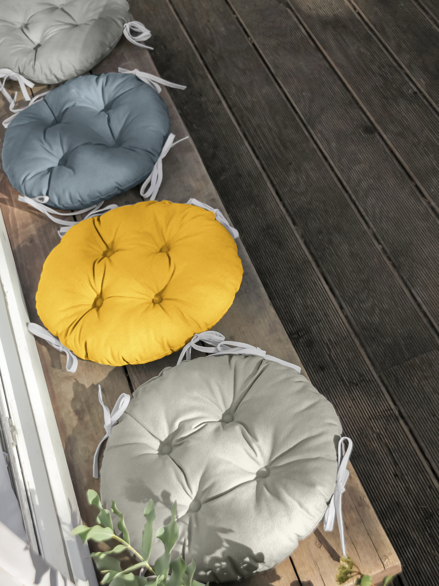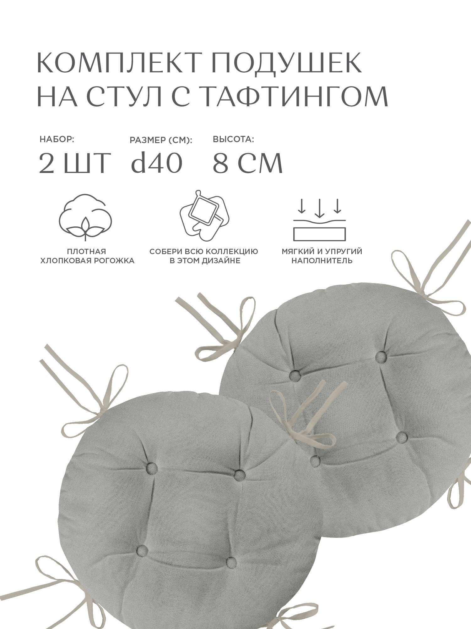 Комплектация:Комплект подушек на стул диаметр 40 - 2 шт Описание:Комплект круглых подушек на стул диаметром 40 см. Идеально завершит интерьер кухни: круглые сидушки на стул – это недорогая возможность привнести уют и одновременно сделать стулья более комф
