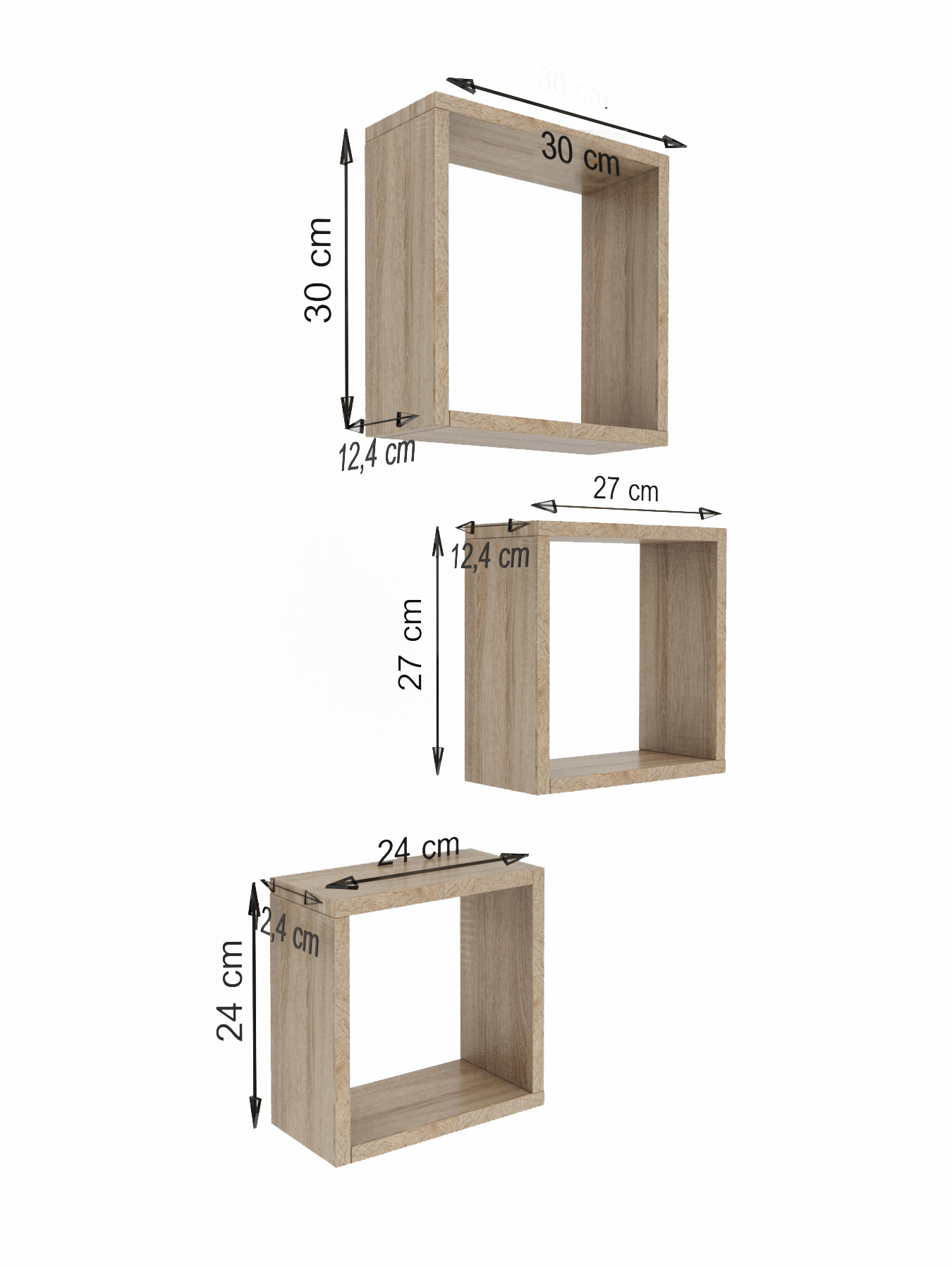 Набор полок (3 шт) Дуб сономаРазмер 30*30*12,4Размер 27*27*12,4Размер 24*24*12,4
