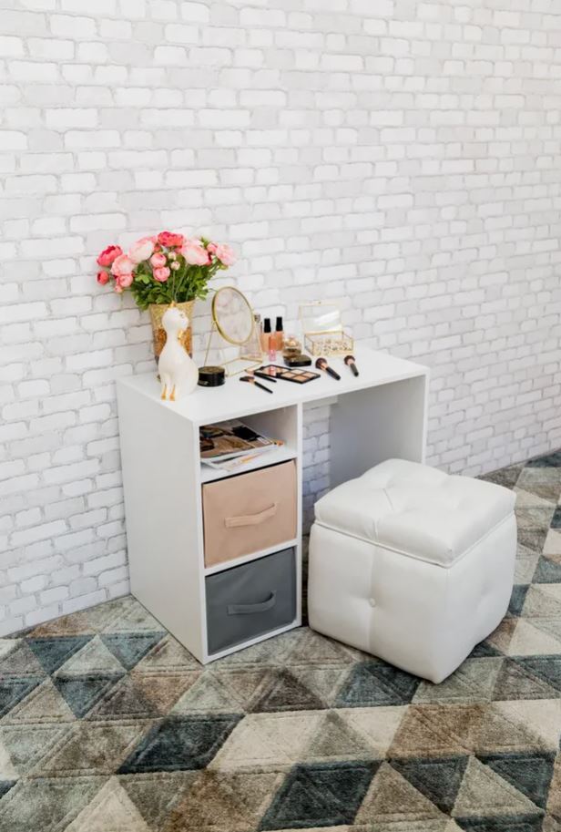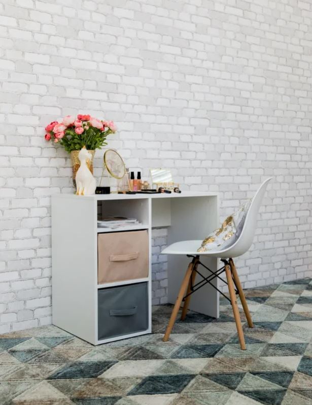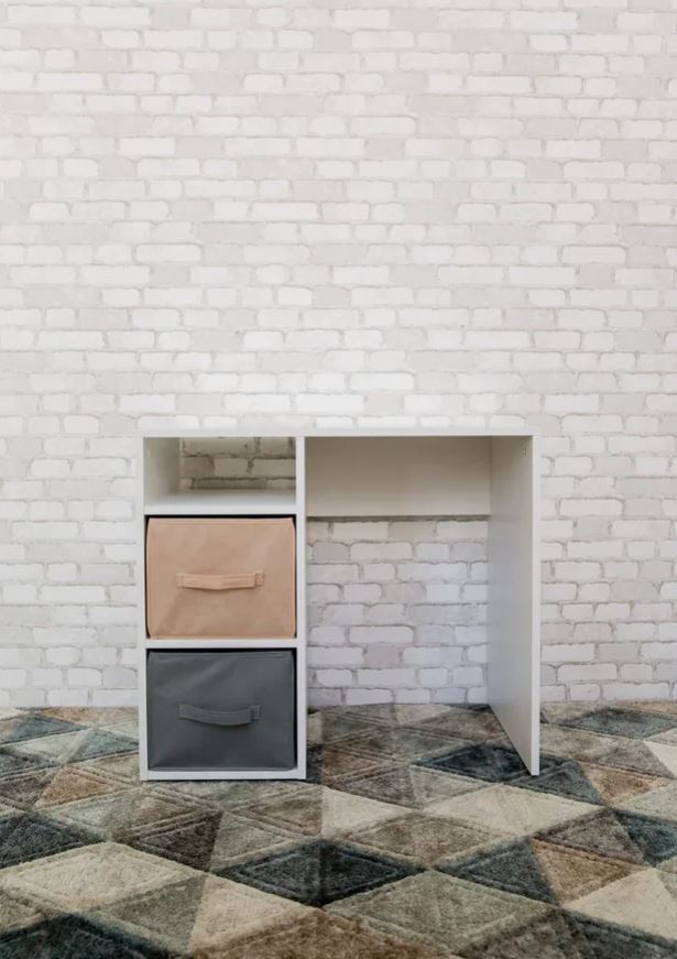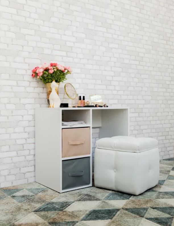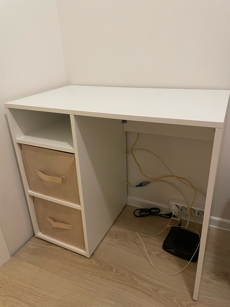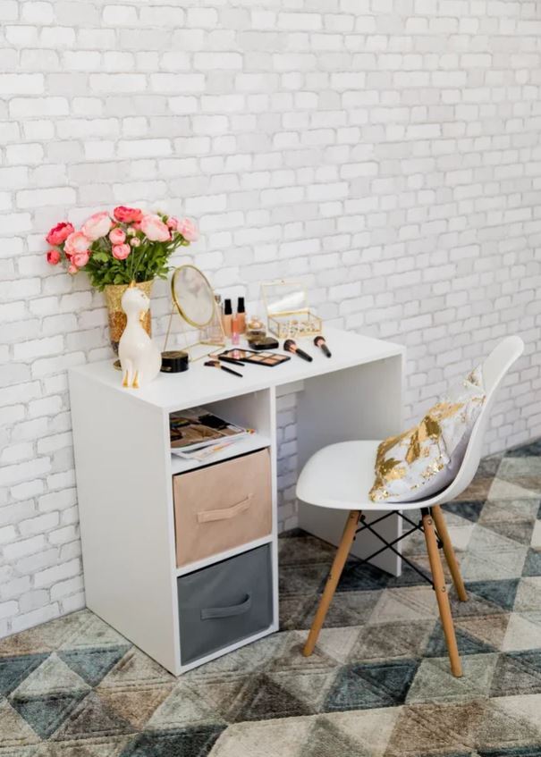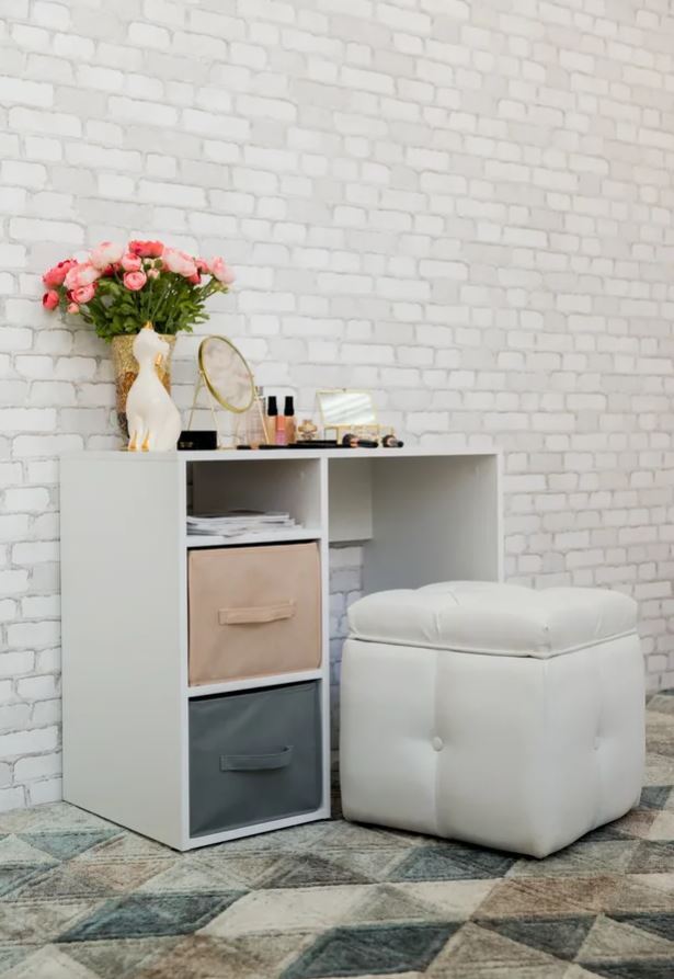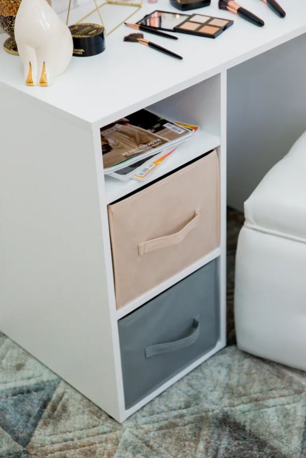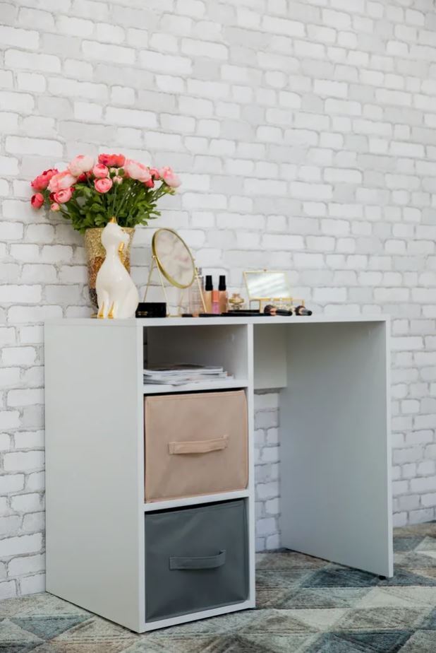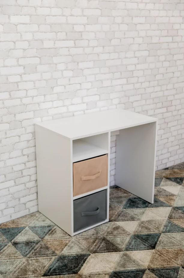 Письменный стол с мягкими цветными боксами для хранения.