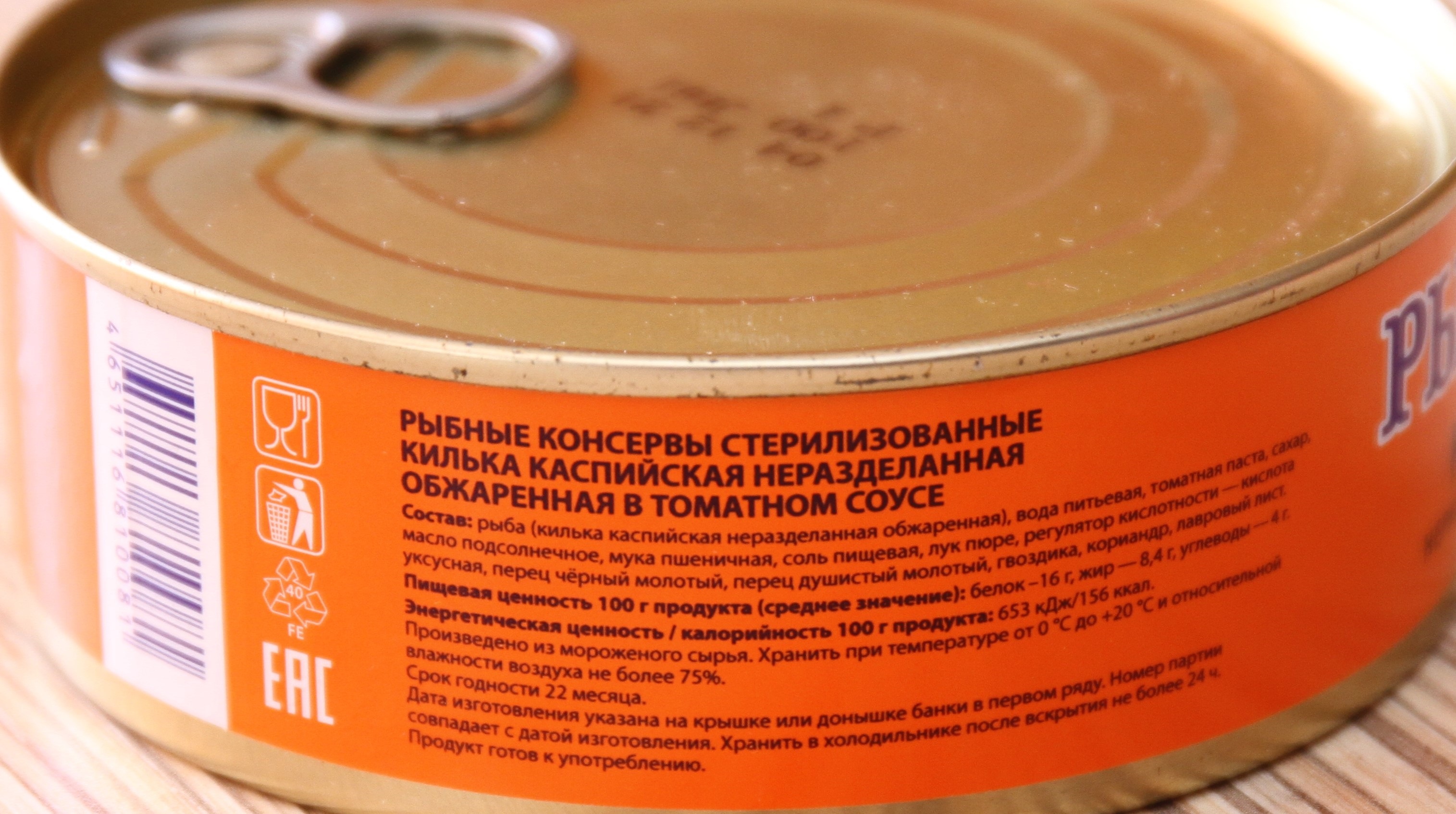 Условия хранения:Хранить при температуре от 0°C до 20°C и влажности воздуха не более 75%. Состав:рыба (килька каспийская неразделанная обжаренная), вода питьевая, томатная паста, сахар, масло подсолнечное, мука пшеничная, соль пищевая, лук пюре, регулятор