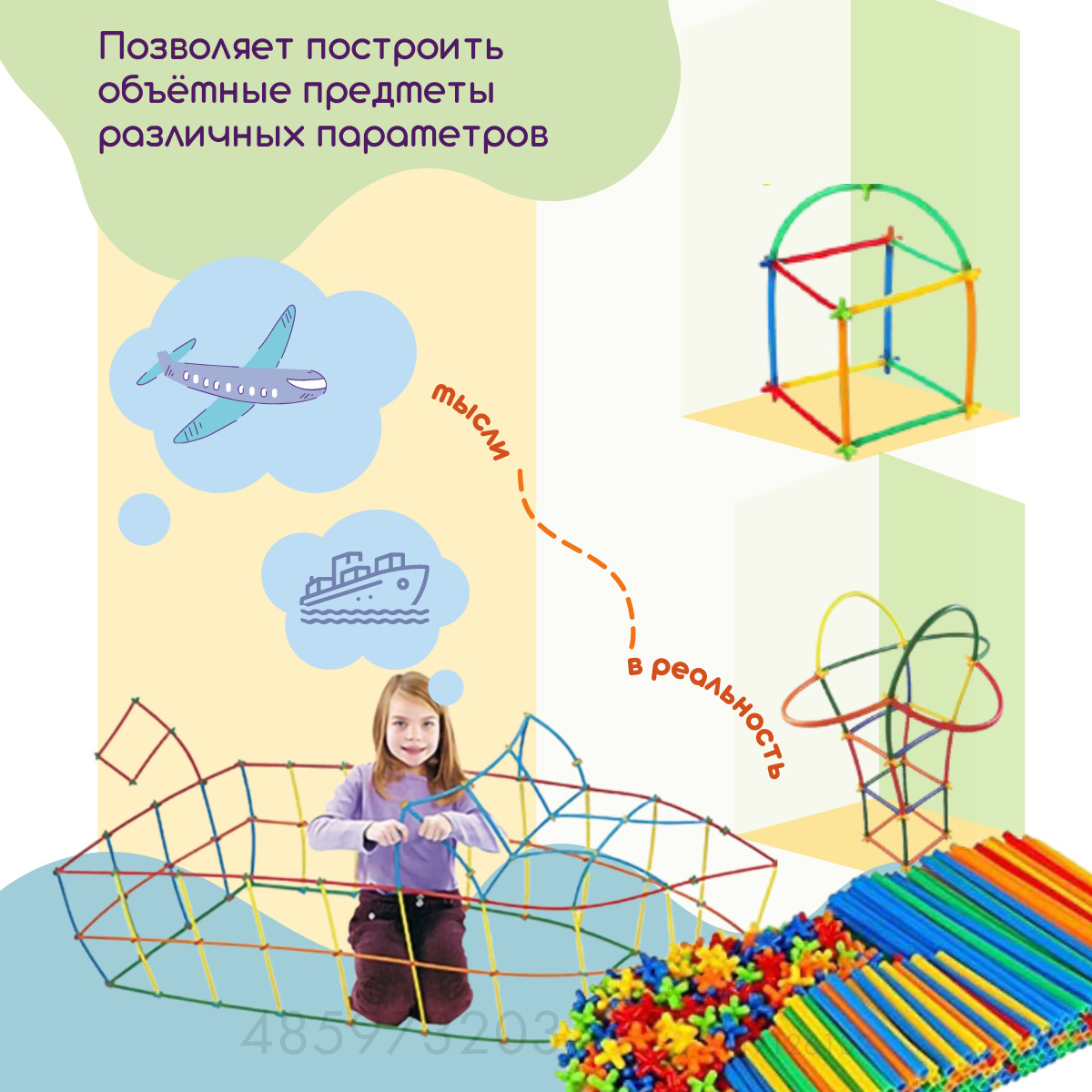 Конструктор для строительства различных форм, фигур, игровых палаток Straws Block. Благодаря 400 разноцветным соломинкам и соединителям, этот конструктор вдохновляет на творчество, способствует развитию координации рук и глаз и помогает вашему юному учени