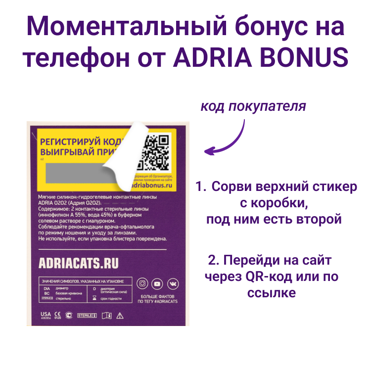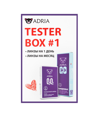 Внимание! Радиус базовой кривизны контактных линз ADRIA - 8,6 мм. Современный дизайн линзы делает ее максимально универсальной, поэтому она подходит 92% носителей.Tester BOX ADRIA (Тестер бокс Адриа) - Первый набор с прозрачными линзами.Попробуй однодневн