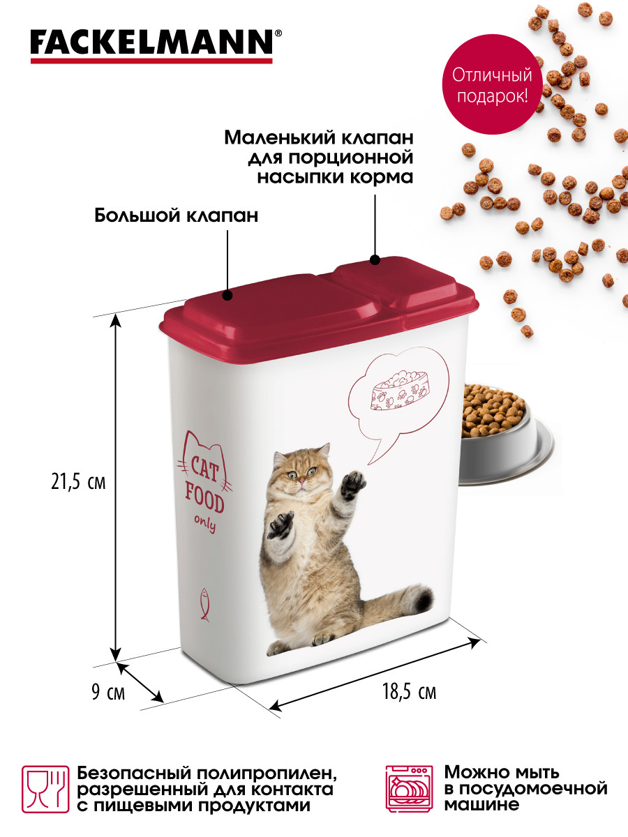 Контейнер FACKELMANN предназначен для хранения сухого корма Вашего любимого питомца. Компактный и герметичный контейнер для корма изготовлен из высококачественного безопасного полипропилена BPA Free, надежно защитит сухой корм от попадания влаги и пыли, а