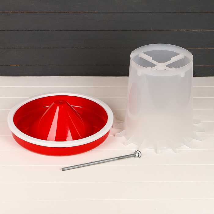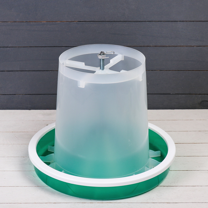 Бункерная кормушка пригодится для кормления птицы. Изделие представляет собой ёмкость и лоток для подачи корма.Принцип работыКорм из бункера постепенно сыпется в небольшие отверстия и попадает в лоток, из которого куры поедают его.По мере расхода корма в