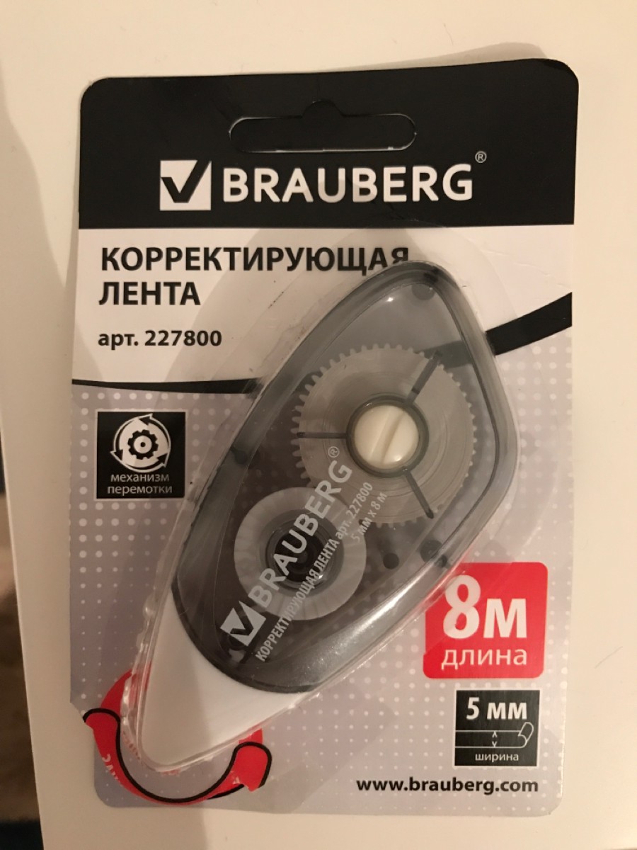 Комплектация:Корректирующая лентаОписание:Корректирующая лента BRAUBERG "BLACK&WHITE" предназначена для мгновенного исправления печатных или рукописных документов.Тонированный черный корпус. Оснащена механизмом перемотки для Вашего удобства. Корректирующа