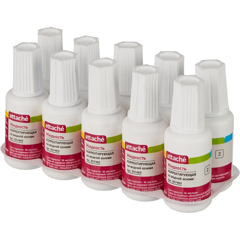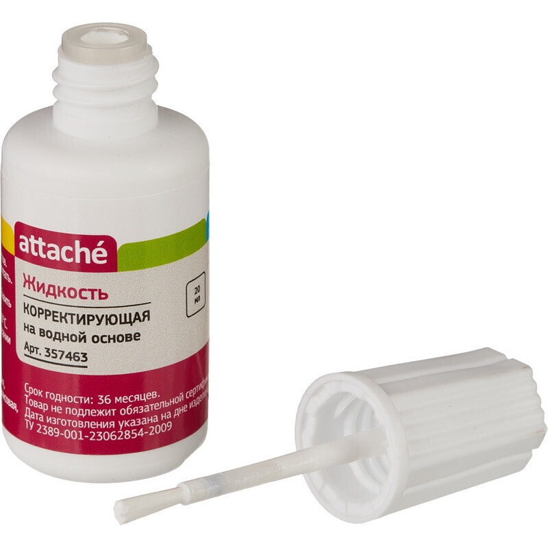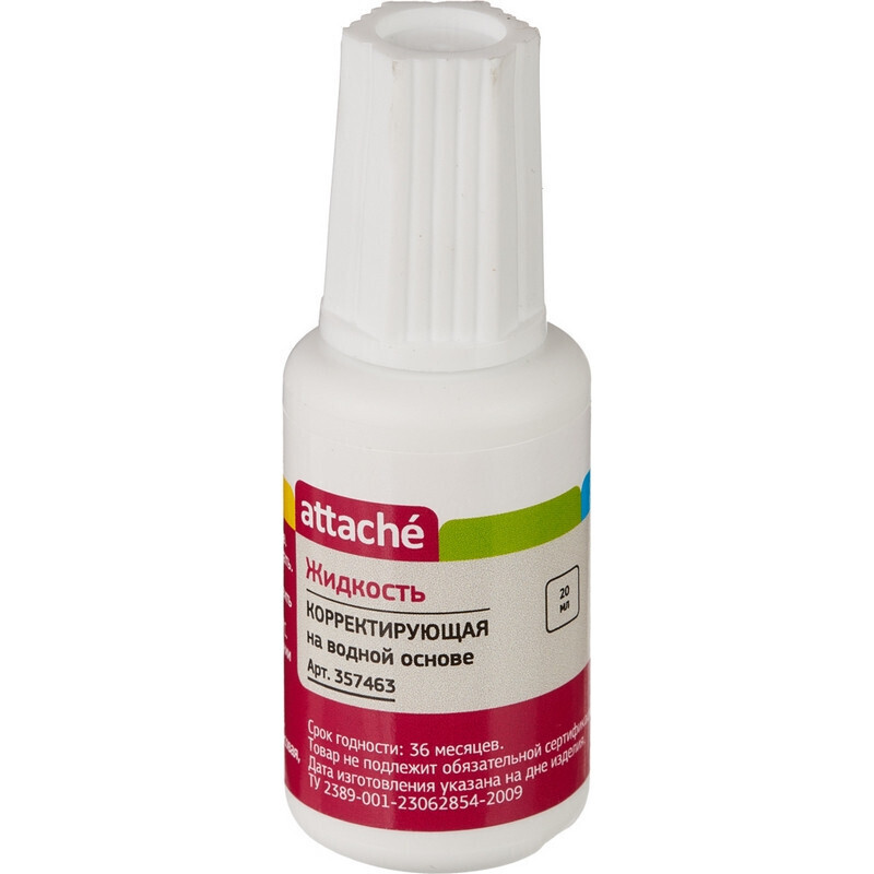 Корректирующая жидкость Attache применяется для корректировки всех типов документов, включая бумагу для факсов. Ложится ровным гладким слоем, создает непрозрачное покрытие. Имеет водную (эмульсионную) основу. Температура при транспортировке - до - 40 град